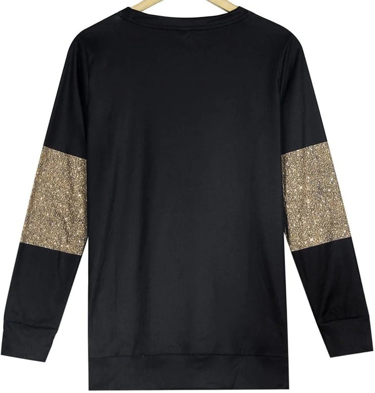 Celebrate the holidays in luxurious style wearing this blinged-out print Christmas tree relaxed top! This long-sleeved shirt will keep you cozy and glam, featuring a starry night and decadent gold and metallic Christmas tree print. Wear this picture-perfect shirt to any holiday party and with your favorite jewelry and jeans or slacks. Machine wash normal with light colors or hand wash. Bleach if needed. May be hung up to dry or lay flat. Tumble dry with low heat. Light ironing if needed.