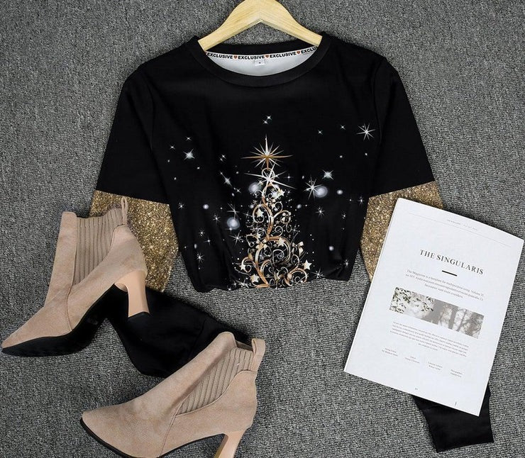 A Glam Christmas Luxe Gold Print Starry Christmas Top