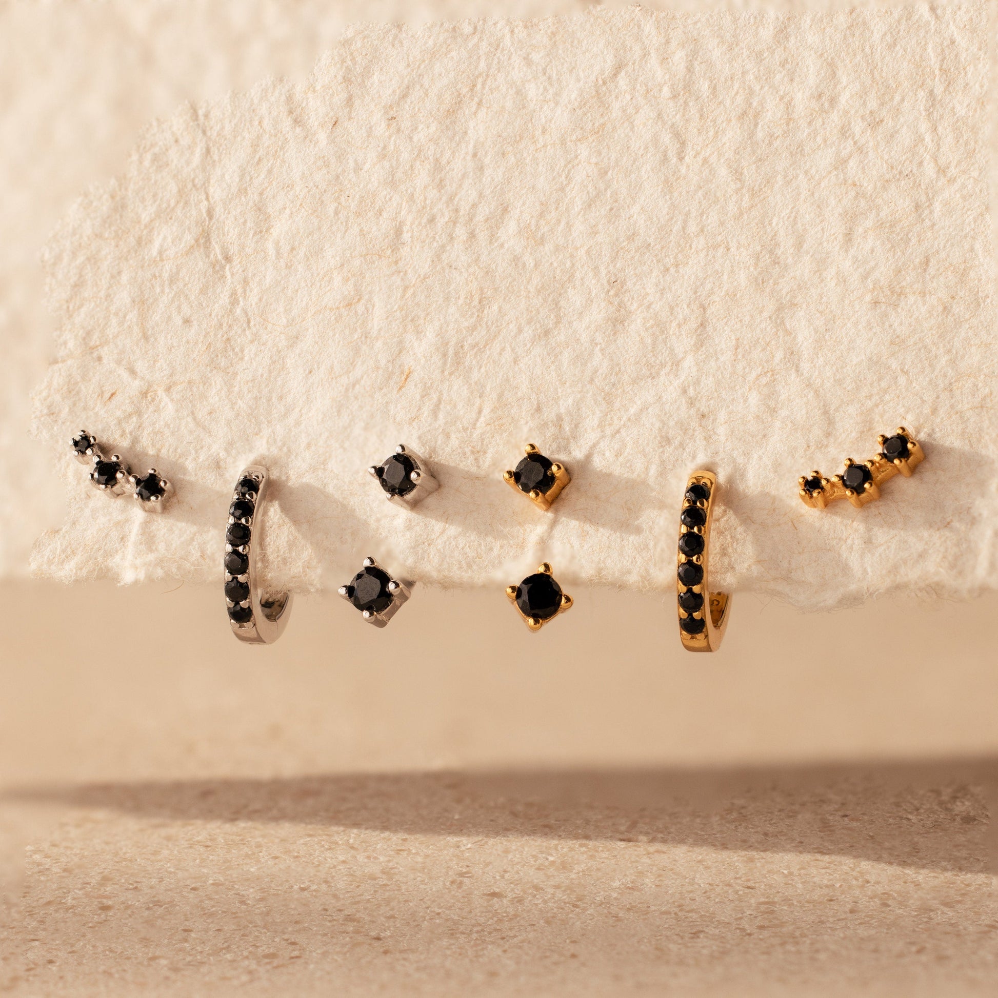 • Featuring a Set of 3 Black CZ Diamond Earrings: