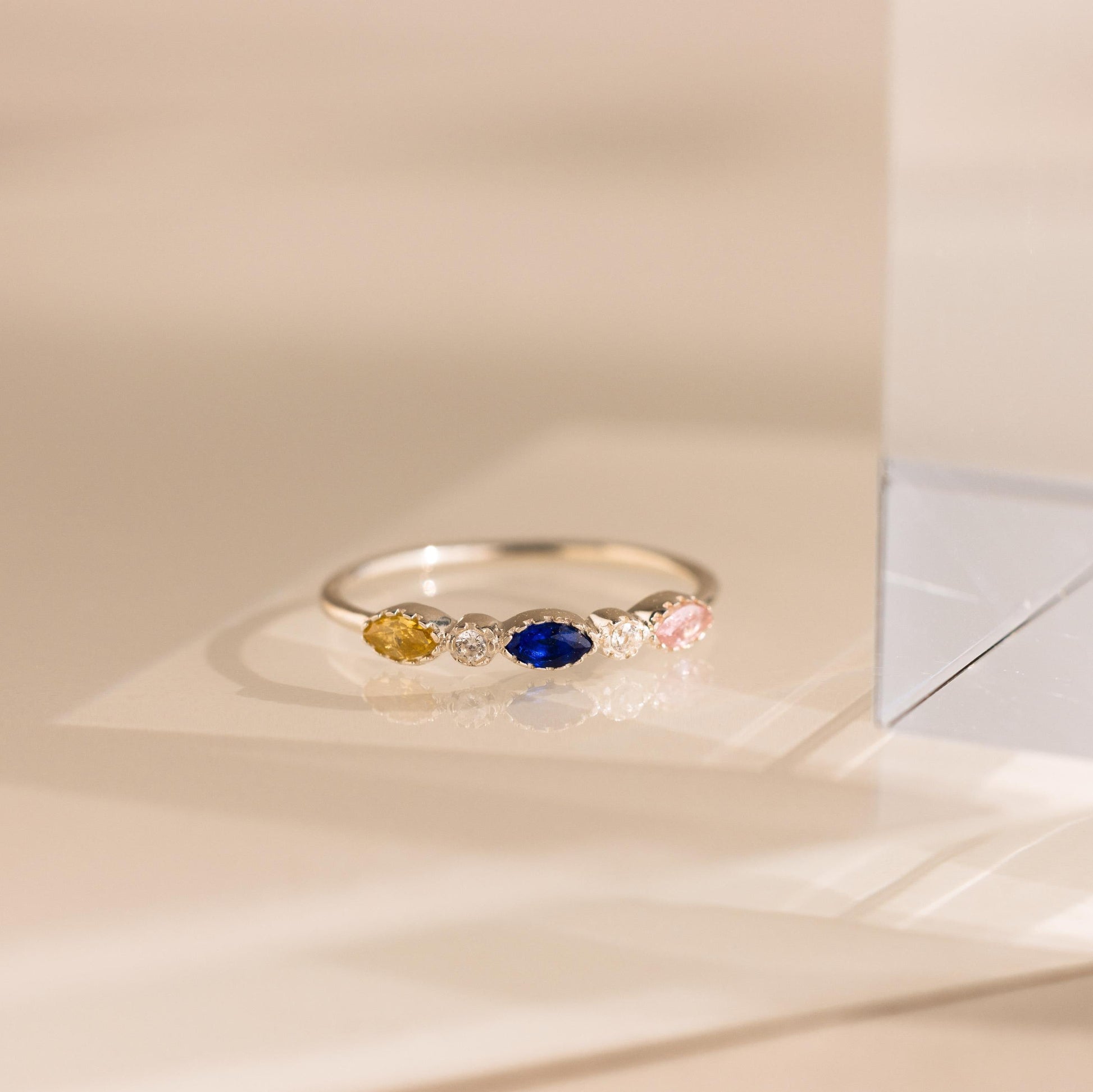 Celebrate your loved ones with our Cluster Marquise Birthstone Ring, showcasing radiant diamonds and marquise-cut birthstones of your choice. Timeless and unique, this ring beautifully represents family, friends, or anyone special in your life. Personalize it for a meaningful piece that keeps those dearest to you close ♡