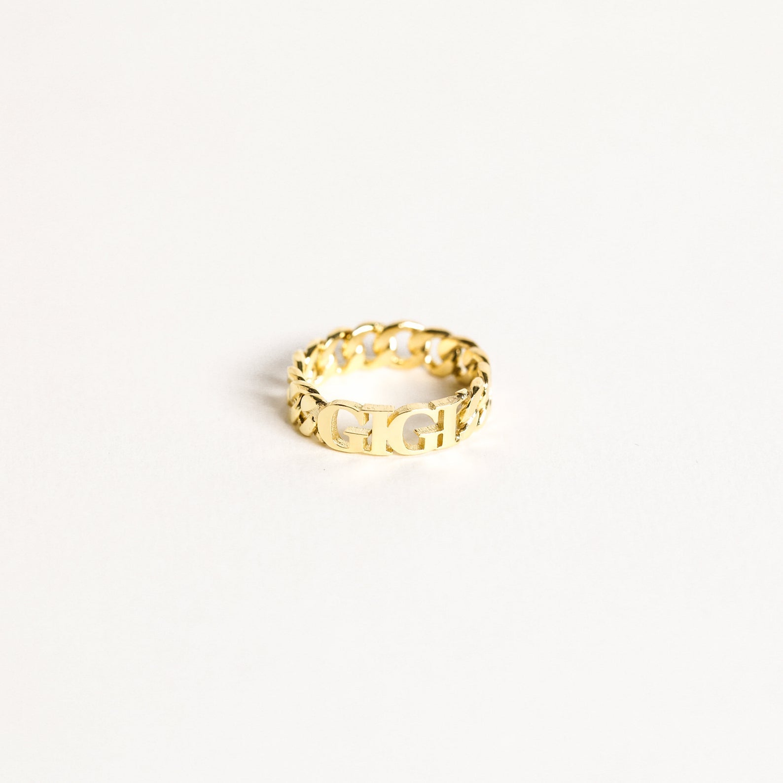 Who doesn't love a good chain moment? Presenting our modern and timeless Curb Name Ring, personalized with initials of your choice. The simple yet edgy, large-link chain design is bold yet versatile enough to suit everyday wear.