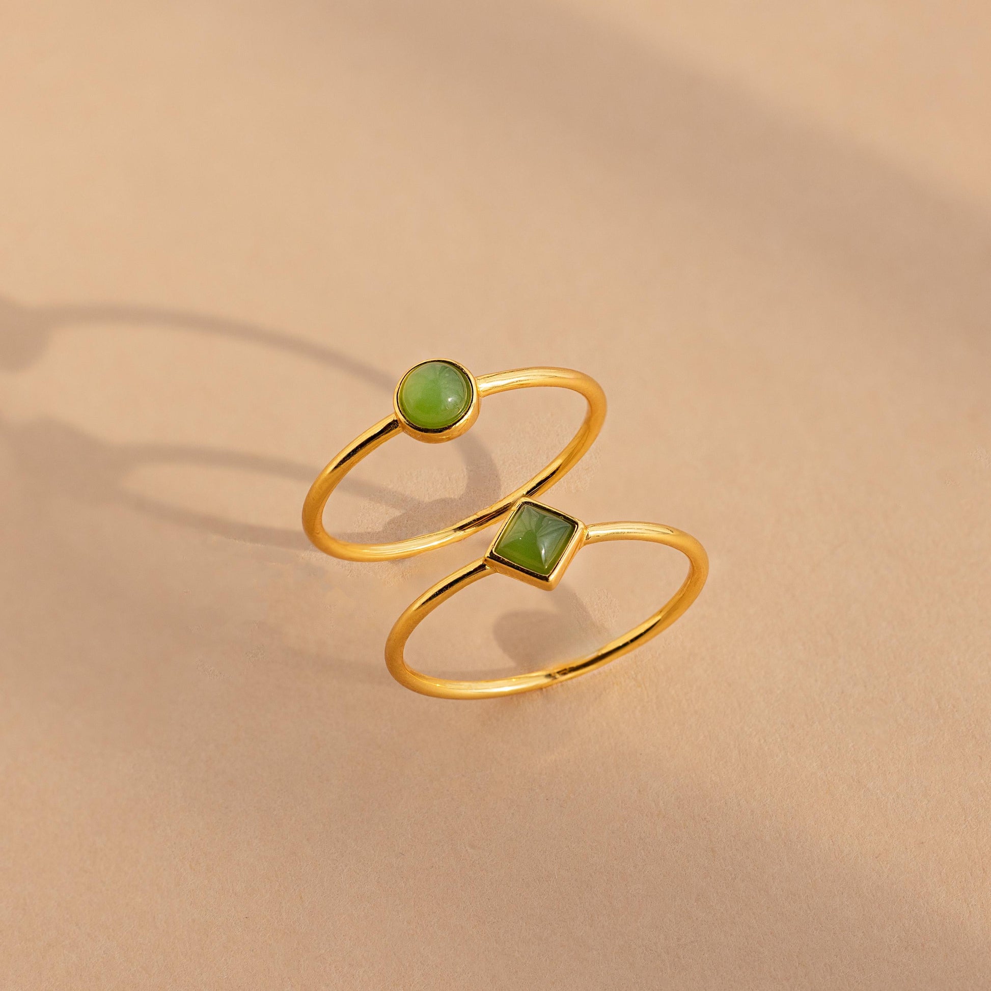Embrace the calmness with our Dainty Jade Ring Set, featuring two thin stacking rings—one with a princess-cut jade stone and the other with a round-cut jade. These serene green beauties make the perfect pair for a peaceful and effortless look ✨