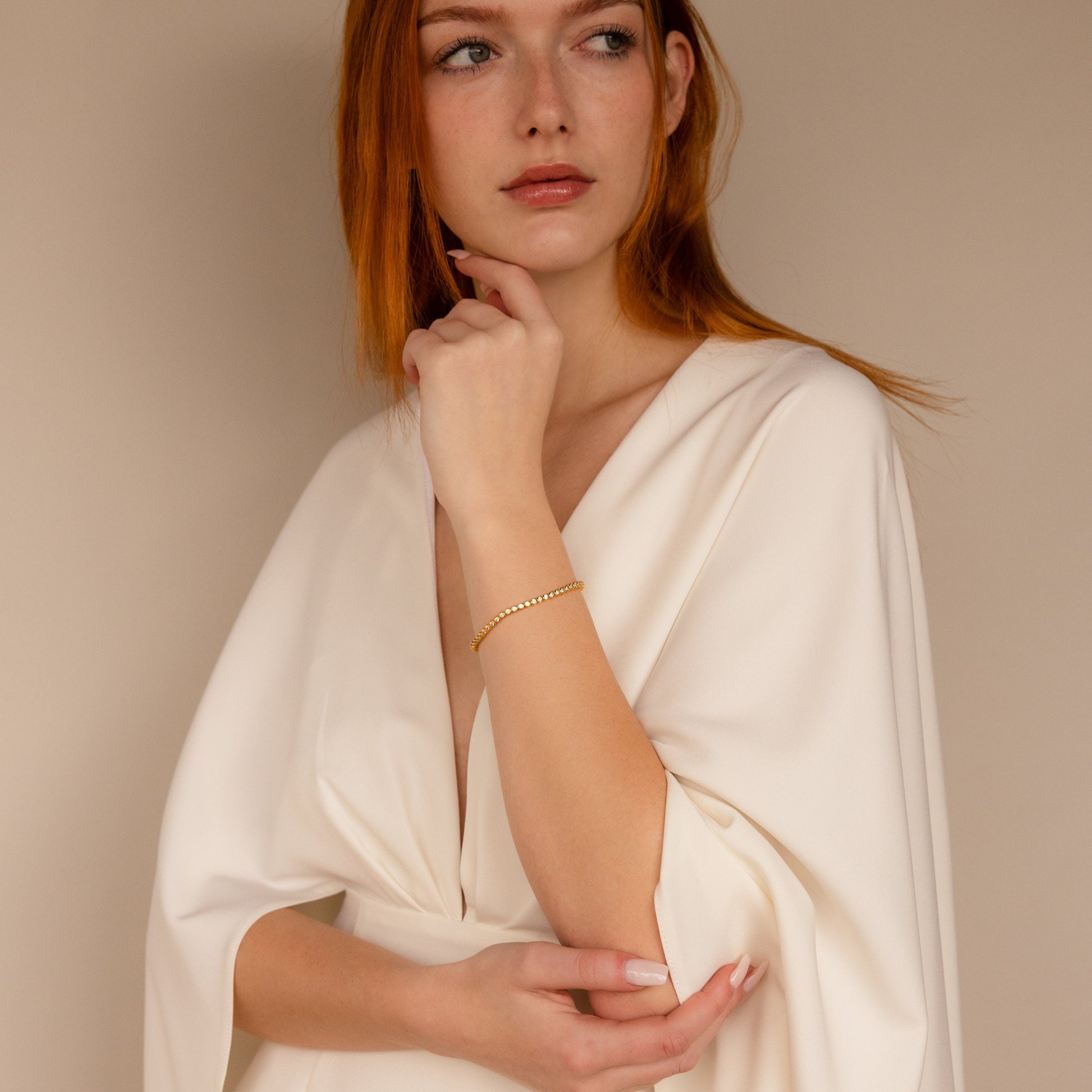Your wedding day is a time for you to sparkle and be the center of attention. Accentuate your romantic ensemble with our Diamond Bezel Tennis Bracelet. Available in 3 lengths, this minimalist gemstone bracelet can be chosen based on the fit you need, making it an even more personalized bridal gift.