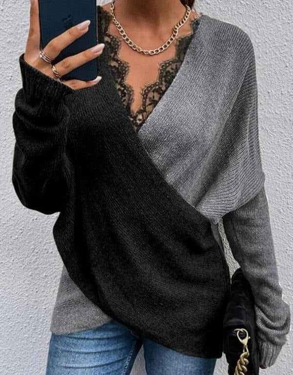INDULGE IN THIS ULTRA-LUXURIOUS SWEATER, PERFECT FOR SLIGHTLY COOLER NIGHTS AND DAYS! THIS COZY KNITTED SWEATER FEATURES A BLACK AND GRAY SIDE THAT GIVES WAY TO A PLUNGING V-NECKLINE, ALONG WITH BILLOWY FITTED SLEEVES FOR A CHIC LOOK THAT IS TRENDY AND ELEGANT. WEAR THIS BELOW THE WAIST SWEATER WITH YOUR FAVORITE LAYERING NECKLACES, JEANS, SKIRT, TALL BOOTS, HEELS, OR FLATS.