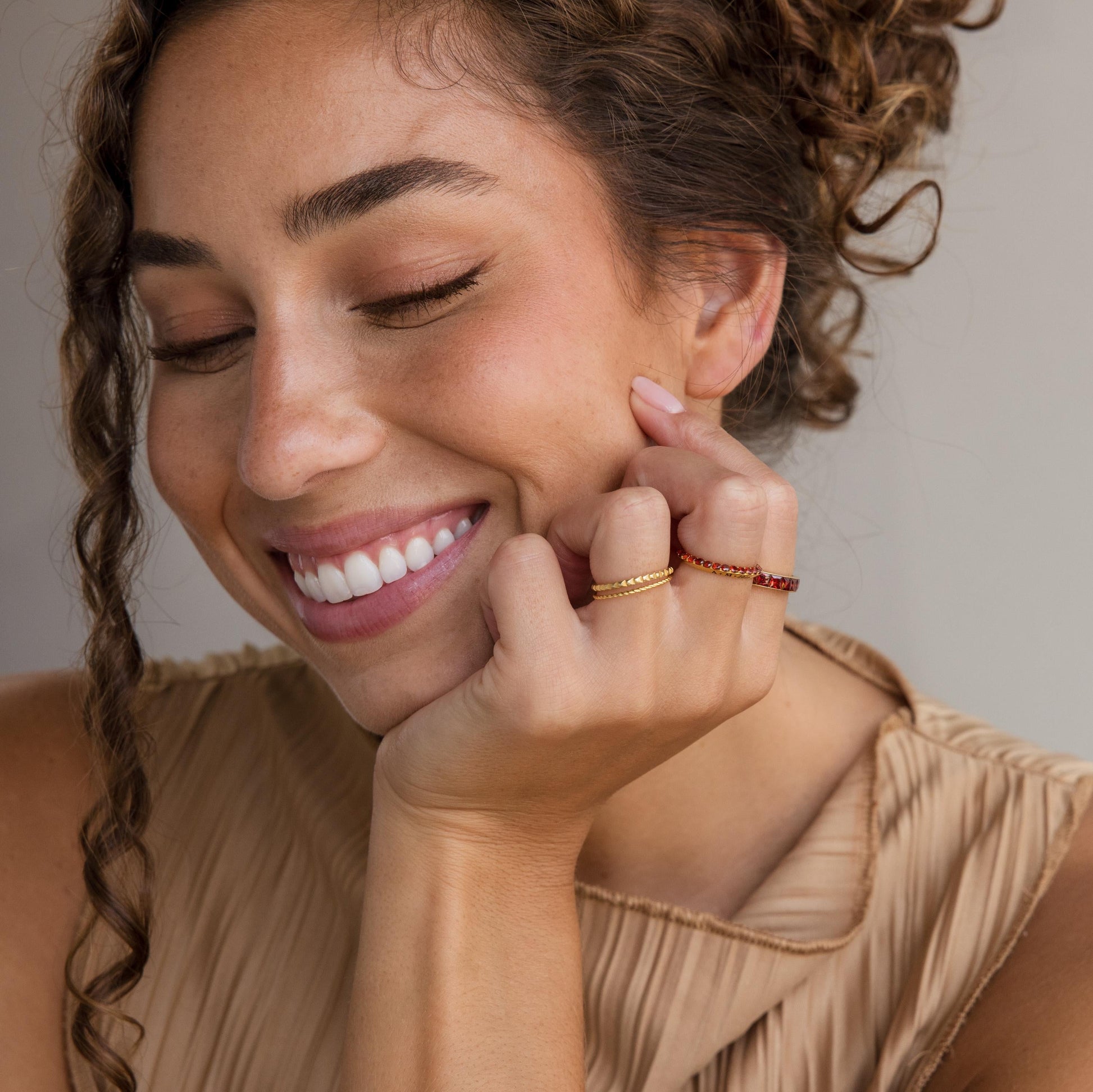 • Model showcases a personalized, statement stacking look, featuring our  and .