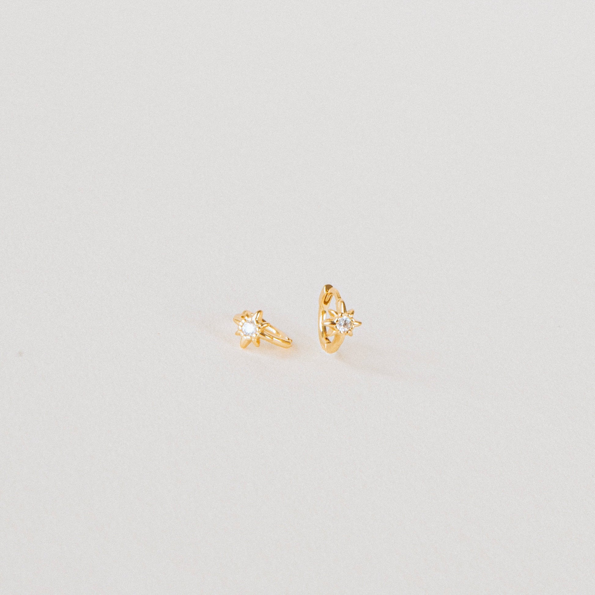 • Featuring 4mm CZ Diamond Sun Charm on Huggie Hoops