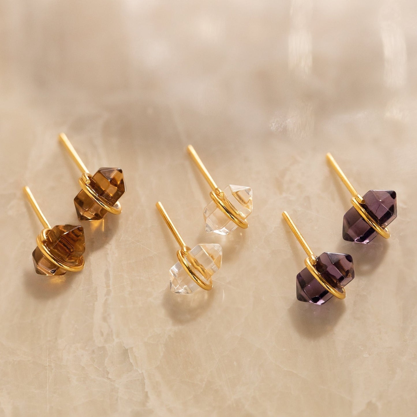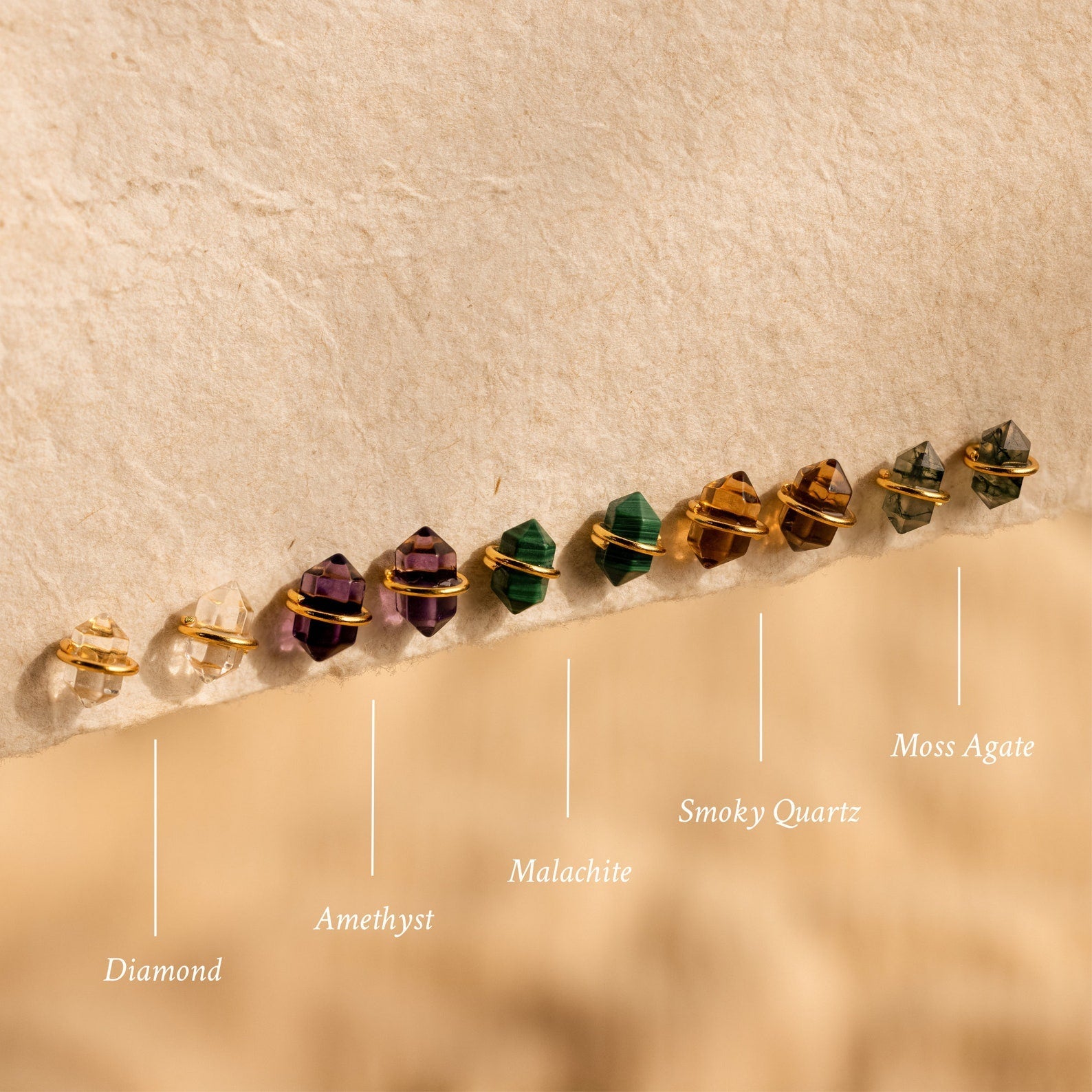 Celebrate special moments with our Herkimer Stud Earrings, great as a thoughtful birthday gift for the special person in your life. Available in five captivating stones: sparkling Diamond, serene Amethyst, rich Smoky Quartz, bold Malachite and calming Moss Agate, these versatile studs beautifully showcase the unique charm of each gemstone, making them the perfect accessory and gift for her ♡