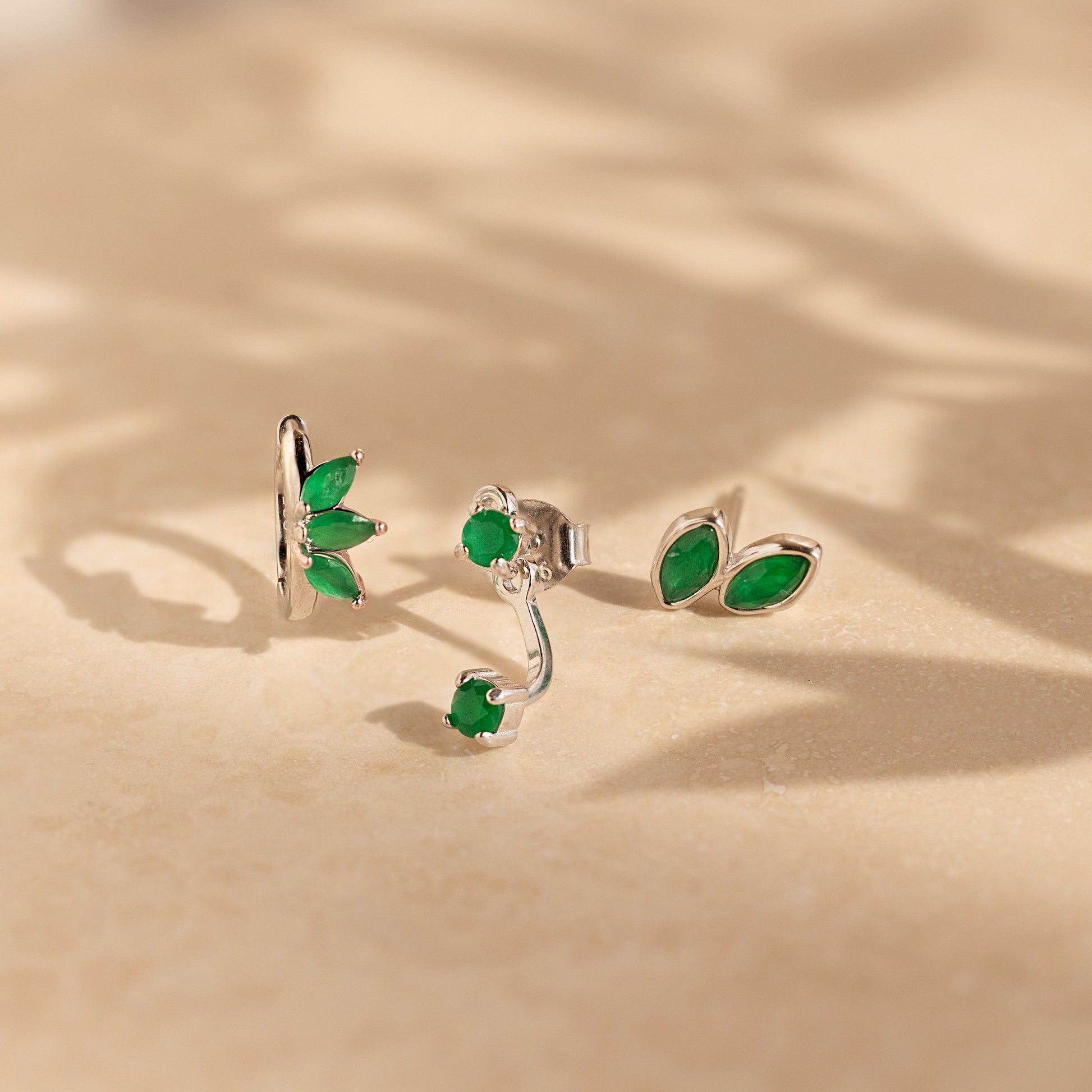 Wear the best of the best in our Jade Earrings Set. Three unique yet cohesive earrings are matched together to create a set that can be worn individually or stacked on the ear. With a stud earring, huggie hoop earring and ear jacket you will never run out of options!