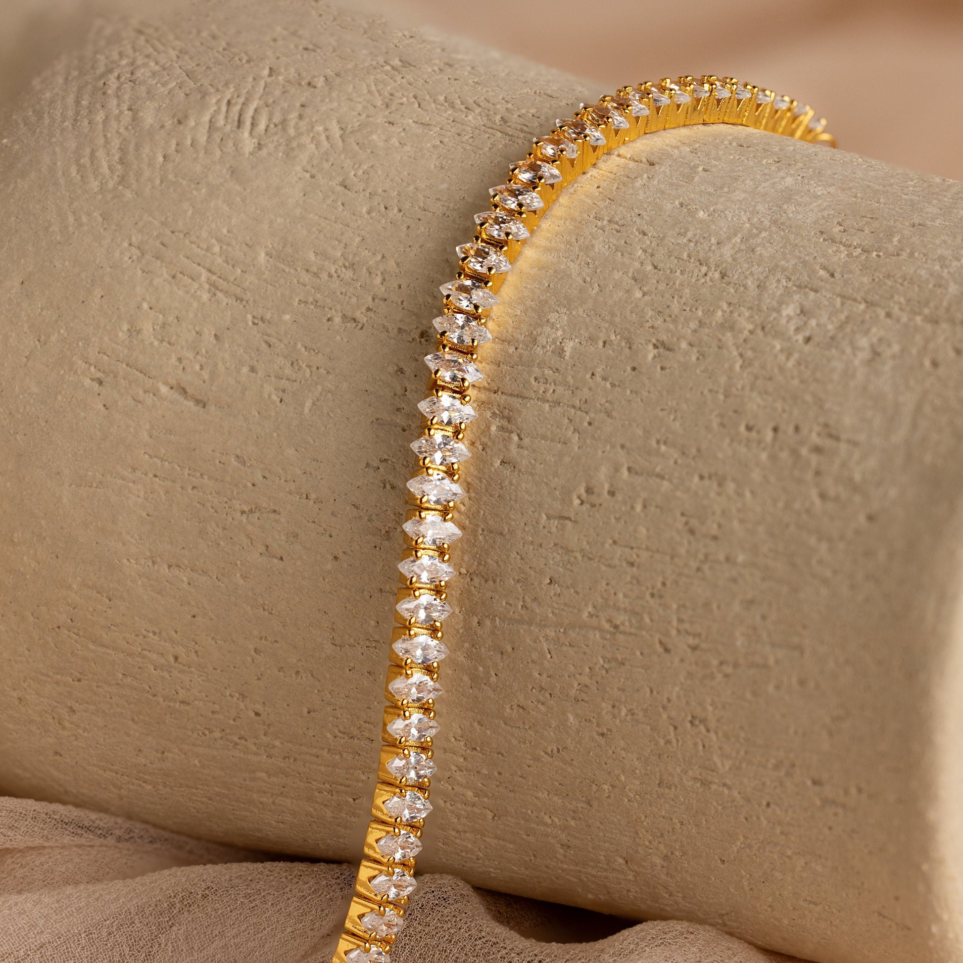 Complete your wedding look with this stunning Marquise Tennis Bracelet, showcasing marquise-cut gemstones that sparkle beautifully around your wrist. Perfect as a piece for the bride or a cherished gift for the maid of honor, this bracelet adds a touch of brilliance to any special day!