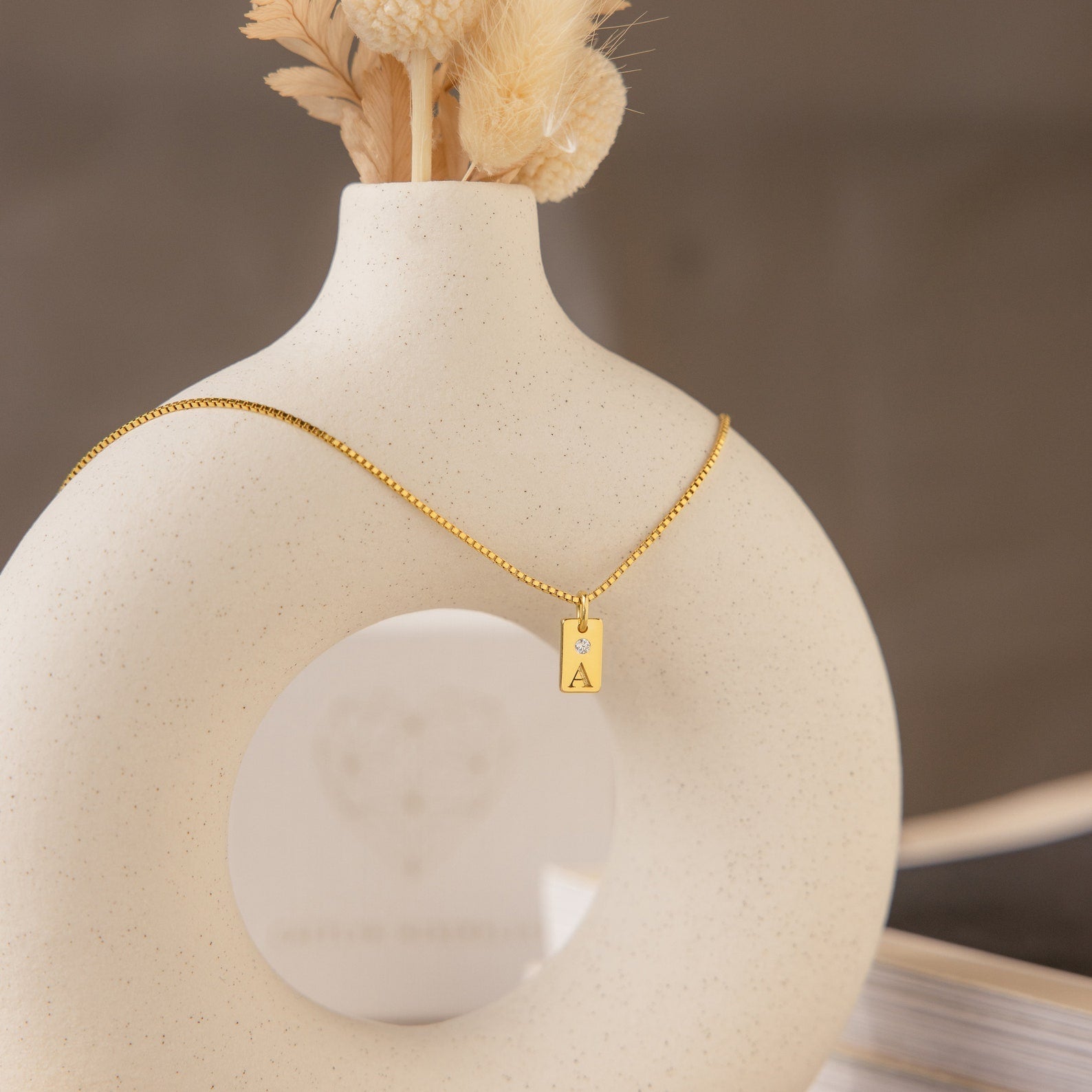 Pretty, dainty and totally adorable! The Mini Birthstone Initial Tag Necklace is just what your jewelry collection needs. A contemporary update to the classic monogram necklace, personalize it with the first letter of your name or add a birthstone to the pendant to for a little extra sparkle. The small, understated design makes this necklace fun and flirty, perfect for everyday wear.