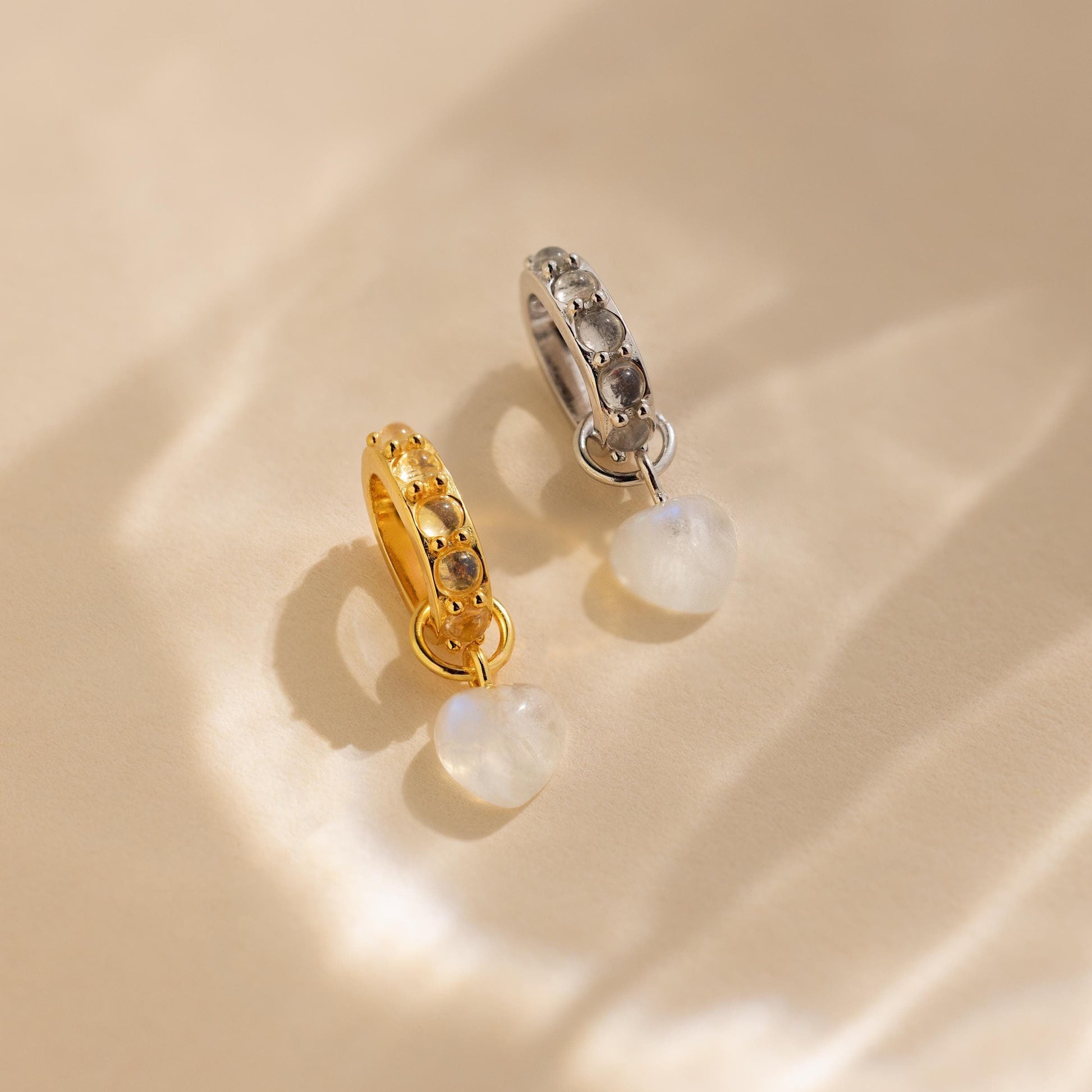 • Featuring a ~8mm CZ Moonstone Hoop Charm with a dangling ~6mm Heart CZ Moonstone