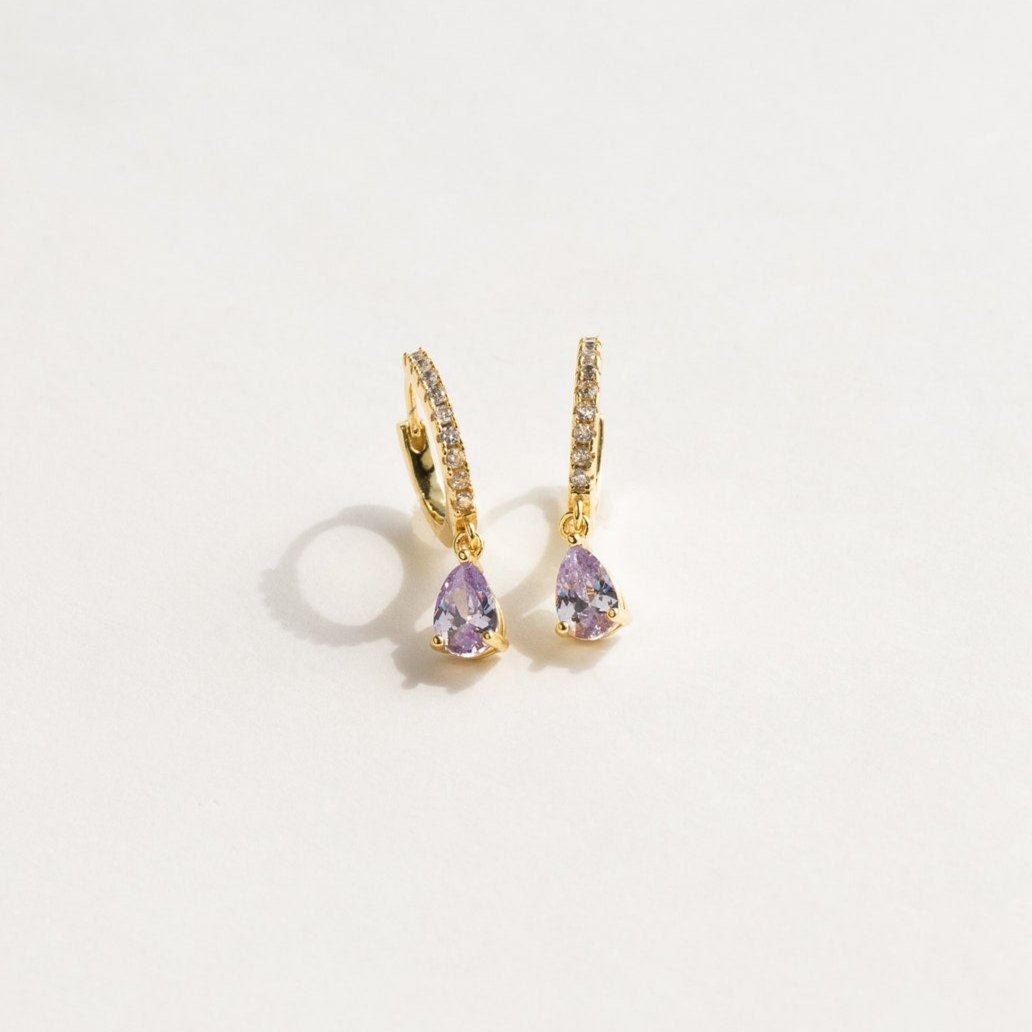 Say it with sparkle! We've taken our well-loved Diamond Drop Huggies and elevated to be unique like you. Create a striking glam look with a custom birthstone teardrop shaped gemstone dangling on a pavé diamond decorated huggie hoop. The pair will beautifully complement any semi-formal attire, so keep them in mind for your fanciest soirees.