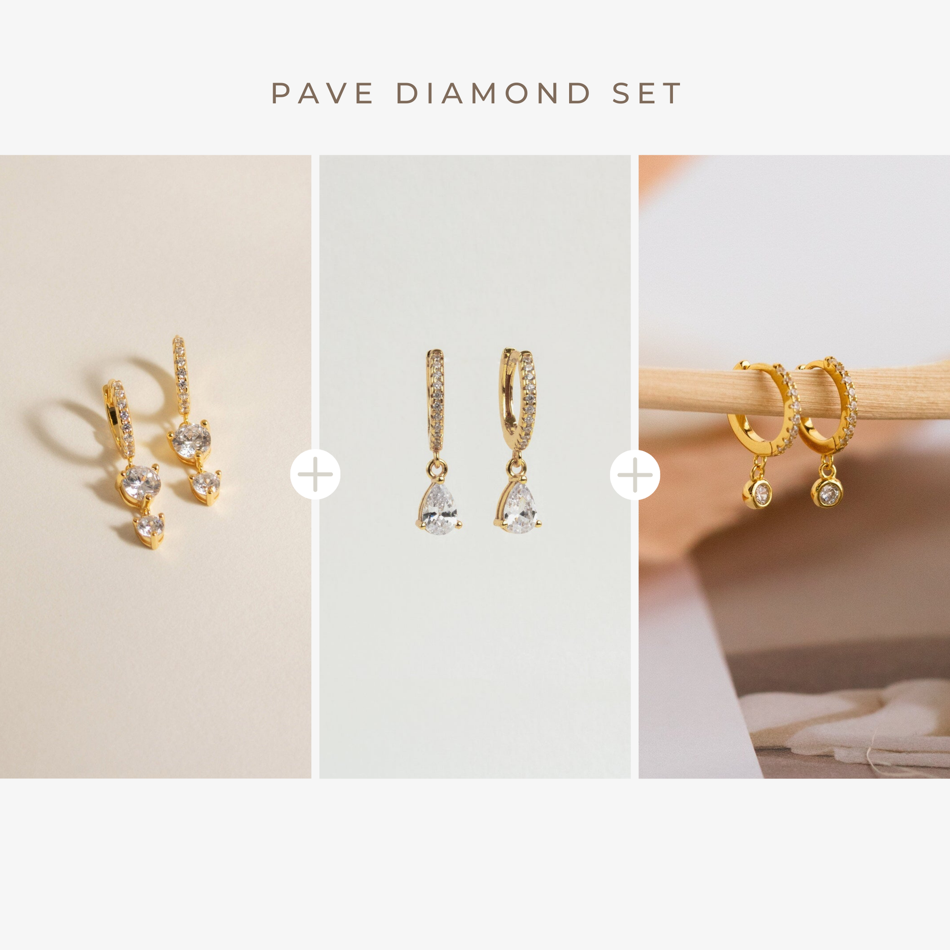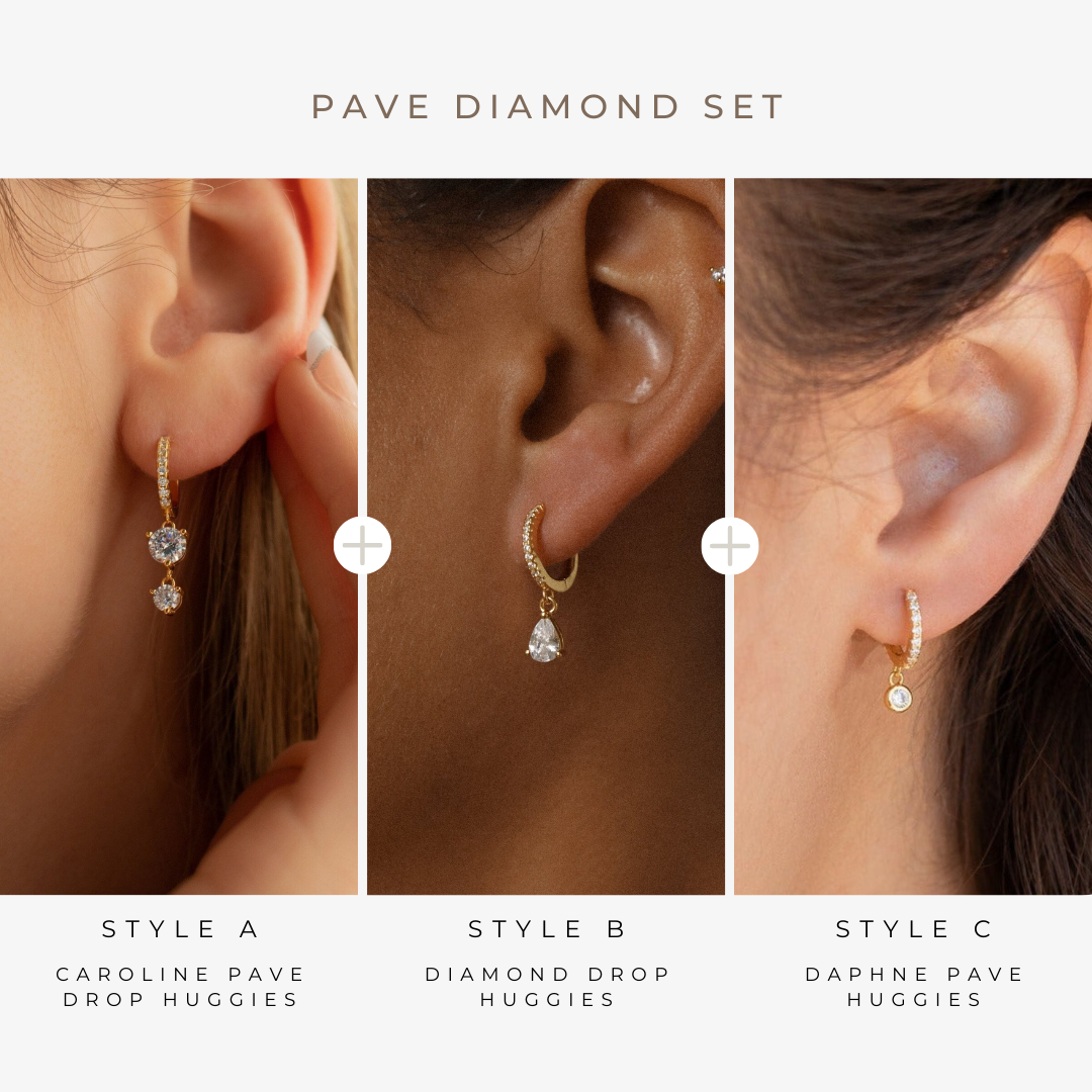 • Style D) Bundle Set of 3 (Save 10%): Includes Caroline Huggies, Pave Diamond Huggies, and Daphne Pave Huggies
