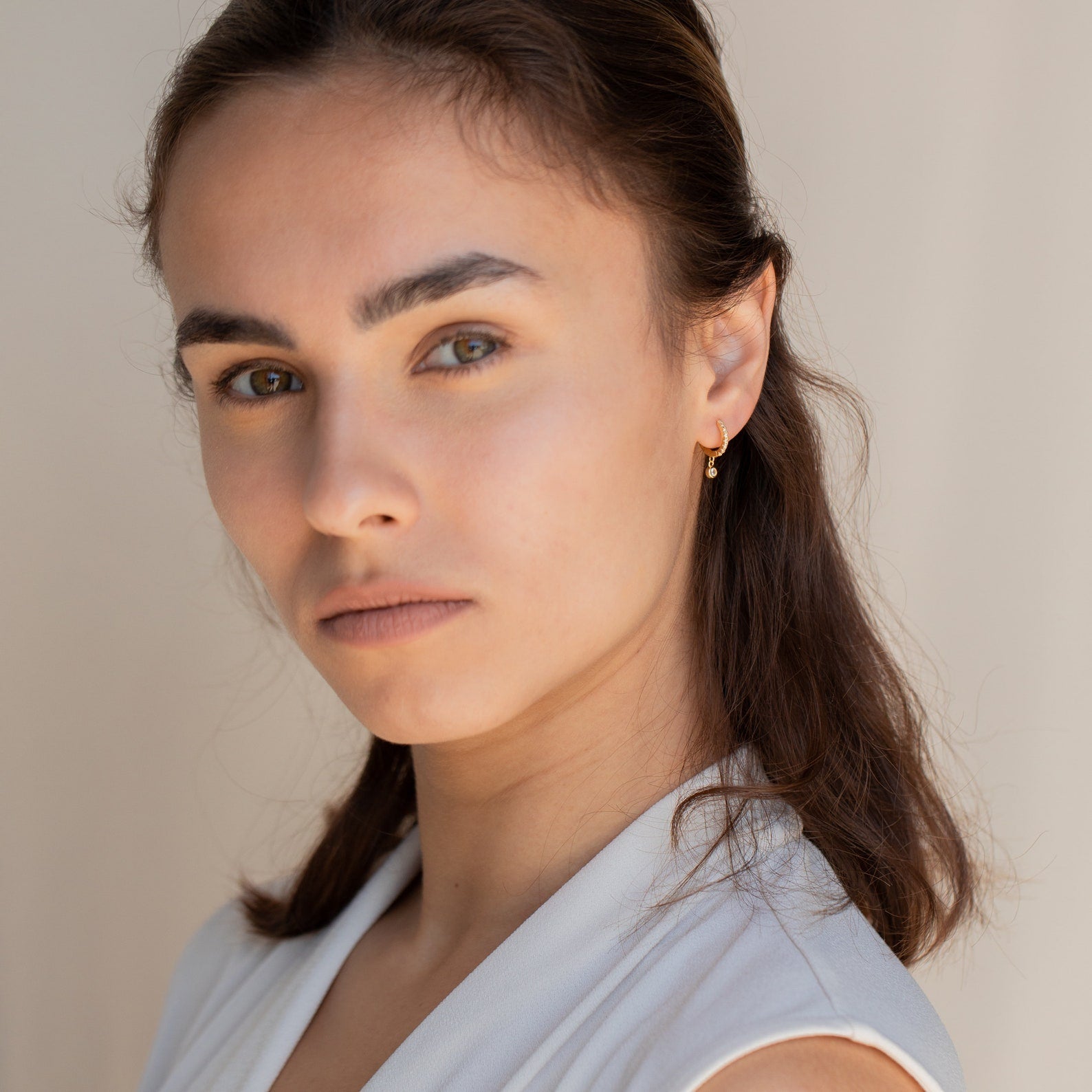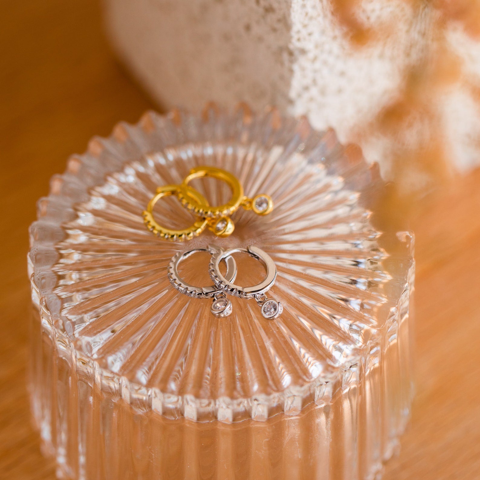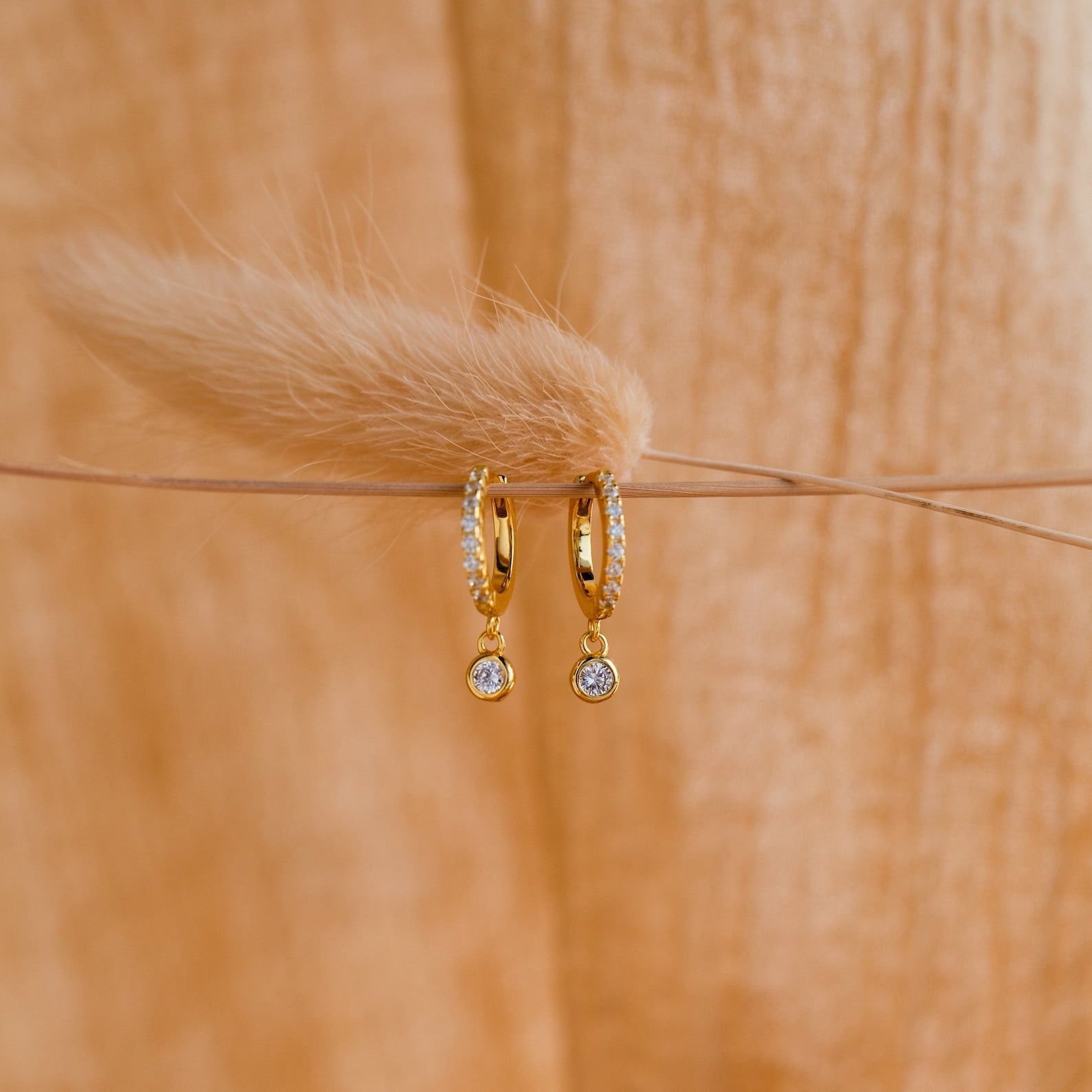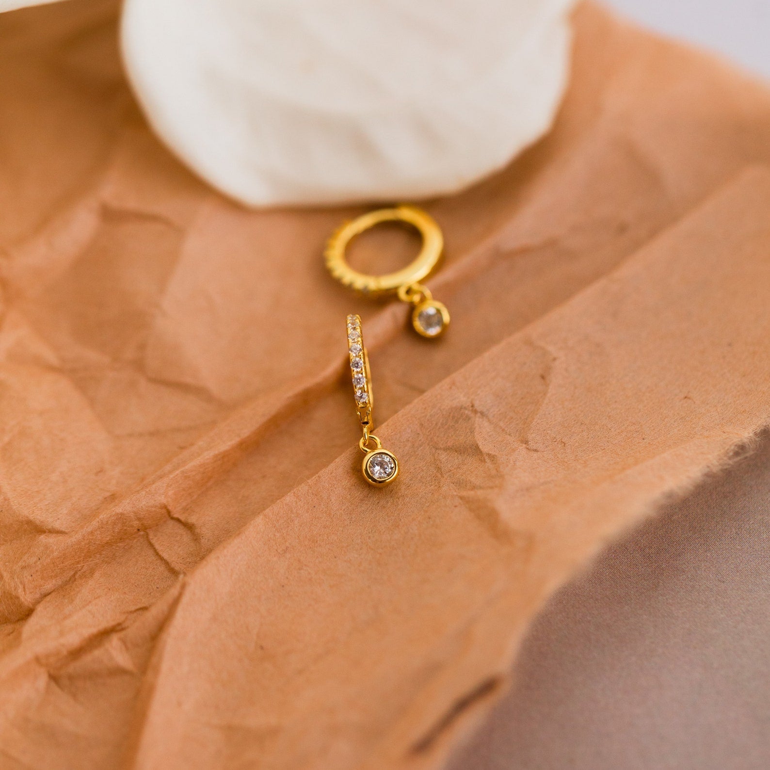 • Style C) Daphne Pave Huggies with a dangling ~3mm CZ Diamond stone | Inner Diameter: 8mm | Outer Diameter: 11mm
