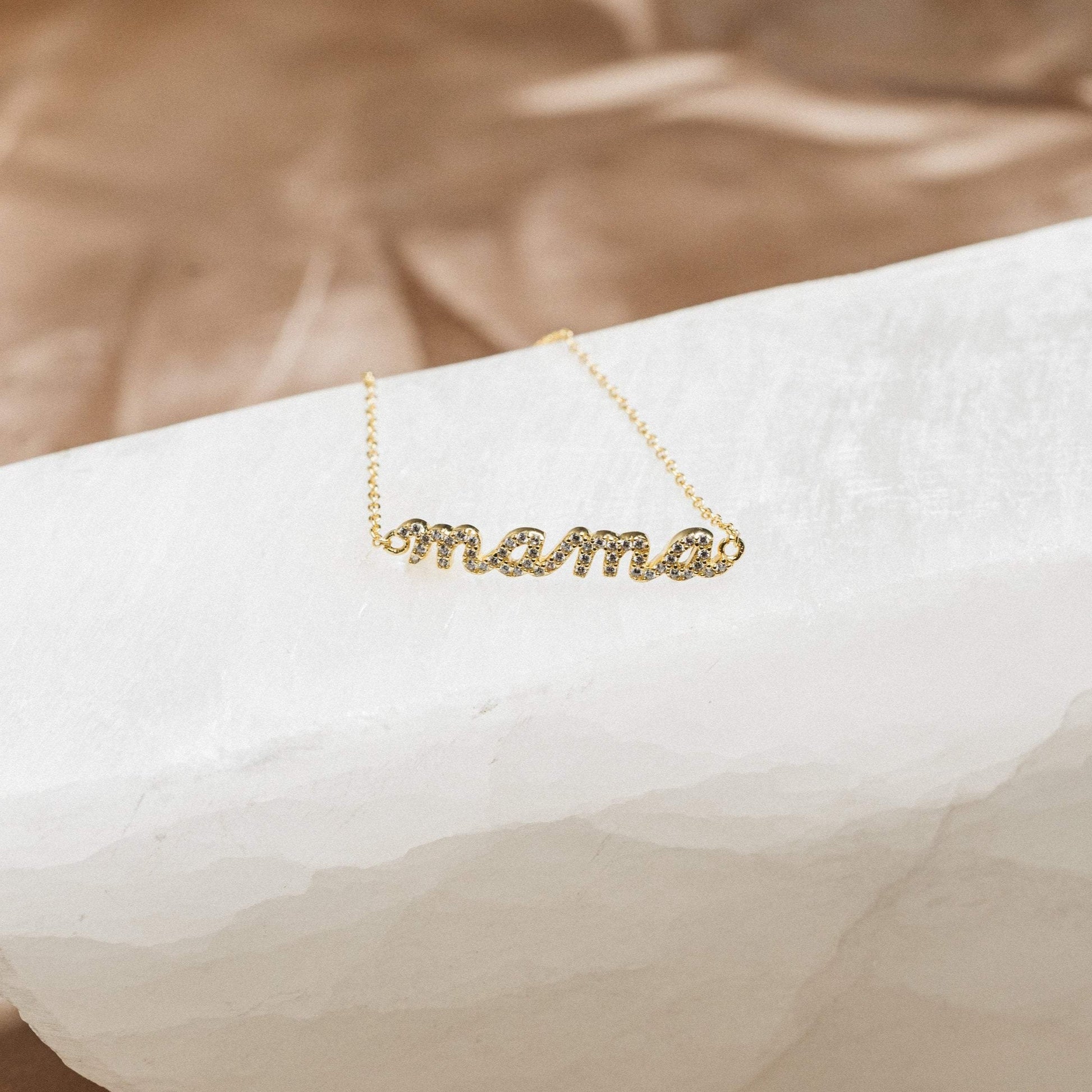 • Featuring 4.5mm Pave Mama Charm in Minimalist Script Font chain length adjustable from 6 to 7.5 inches