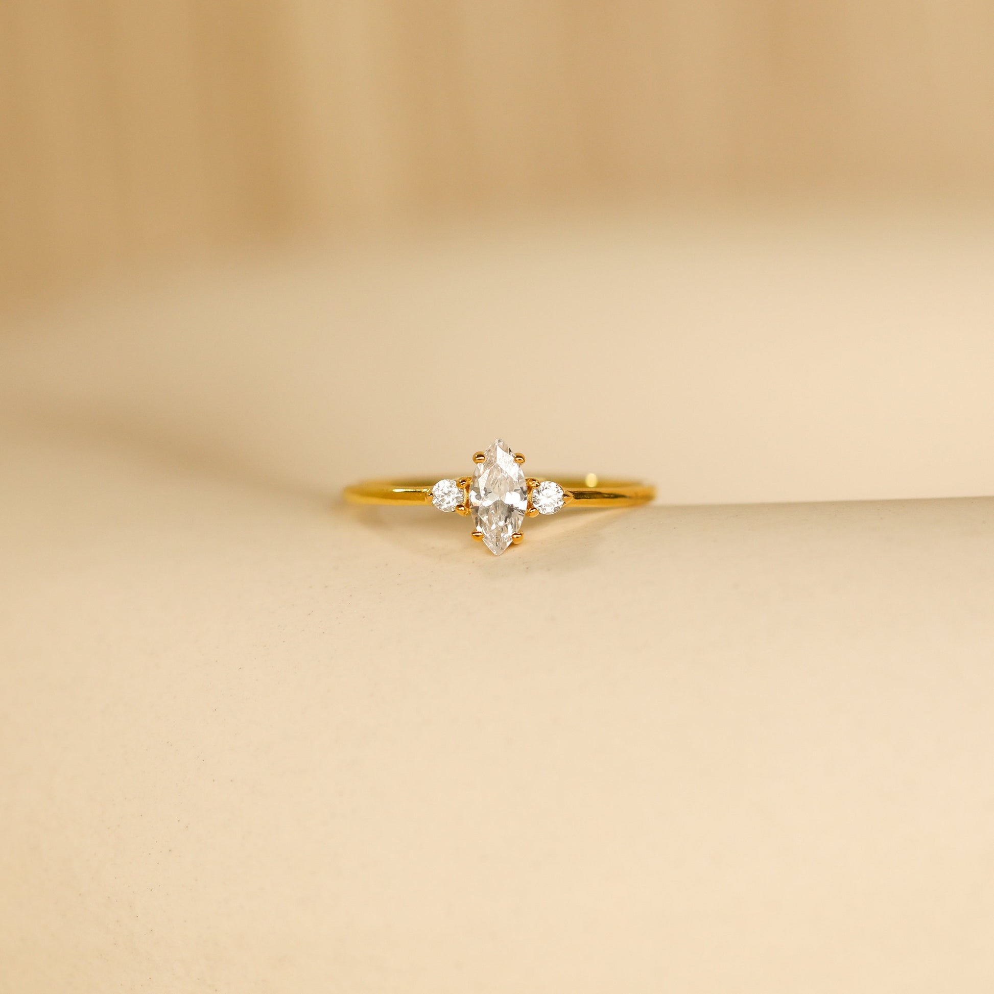 • Featuring a ~7mm x 3.5mm Marquise Birthstone on a ~1mm Band with two ~2mm Round Diamond CZ Gemstones on either side