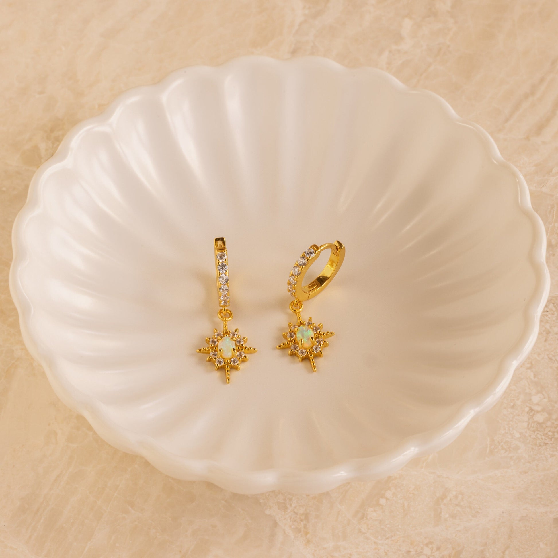 • Featuring ~2mm wide Huggie Hoop Earrings with 12mm x 10mm dangling CZ Opal Star Charm