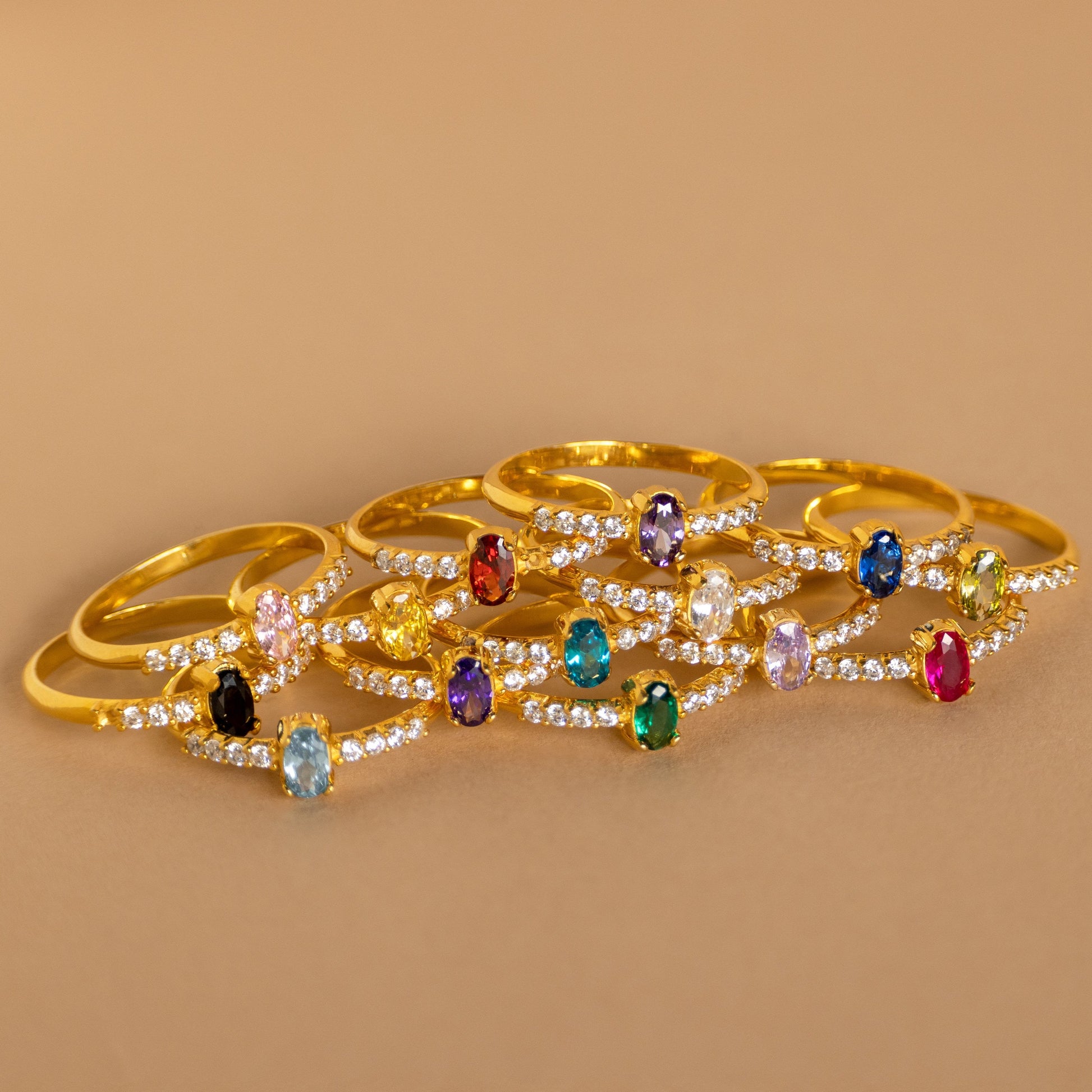 An oval cut gemstone represents everlasting love and new beginnings. Bring these into your life with our Pave Oval Birthstone Ring. Whether you are ringing in a birthday or gifting this to someone you love, this custom gemstone ring is a glamorous way to treat yourself and others.