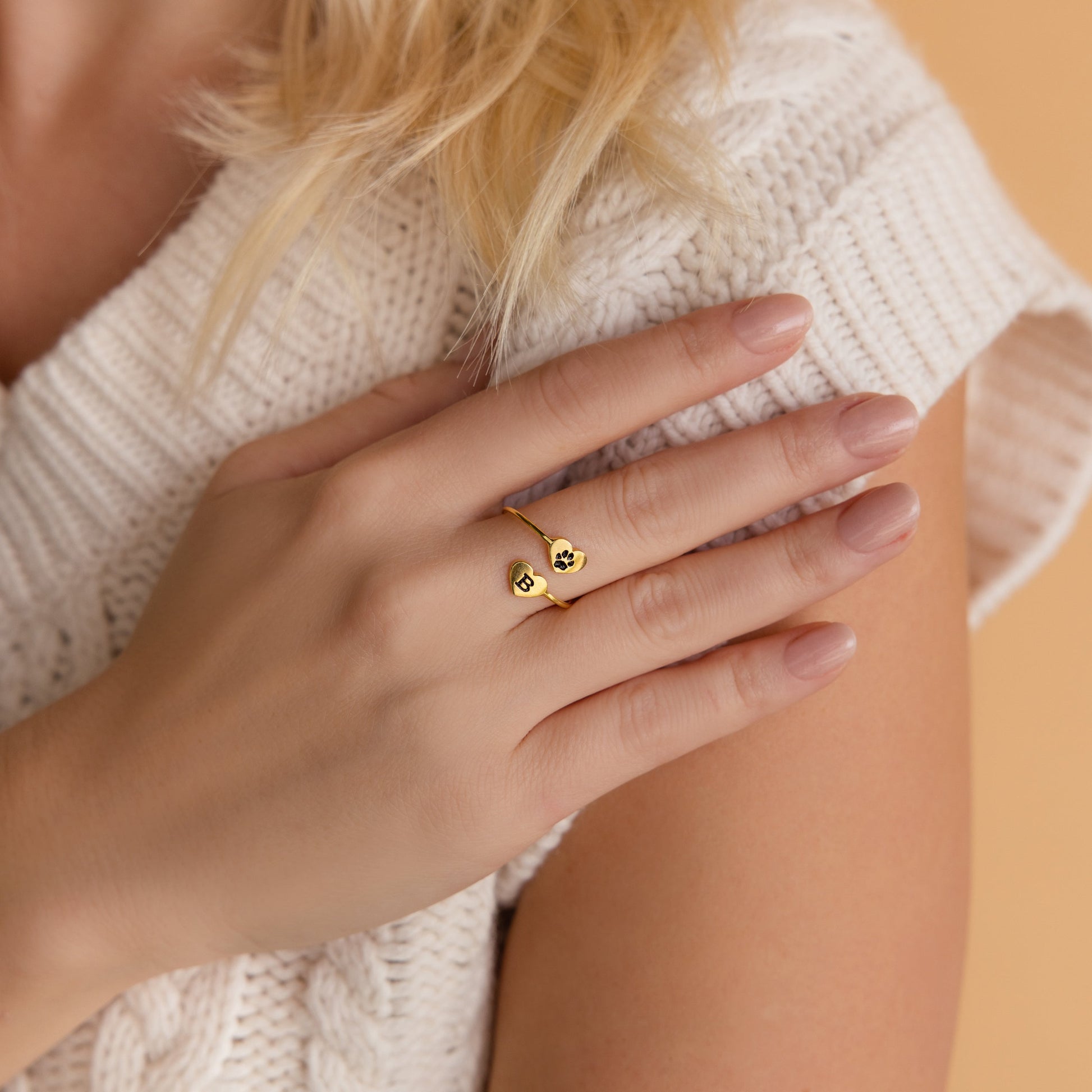 Paw Print Duo Heart Ring