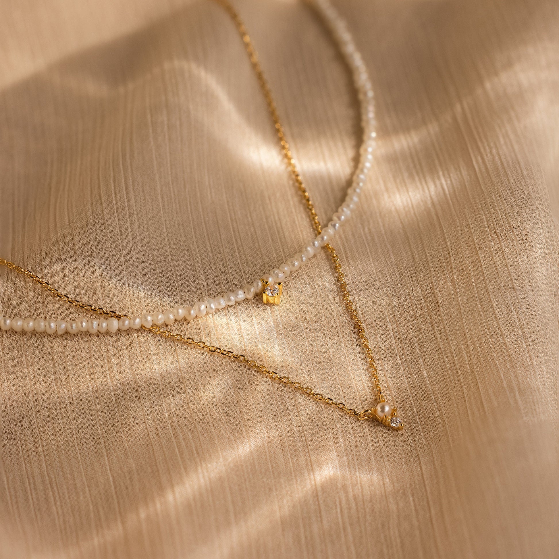 Embrace the serenity of the sea with our Pearl & Diamond Duo Necklace. Featuring a delicate Pearl Choker and a sparkling Damond Pendant Necklace in one, this set effortlessly captures the ocean's timeless beauty and charm, adding sparkle and elegance to any everyday outfit.