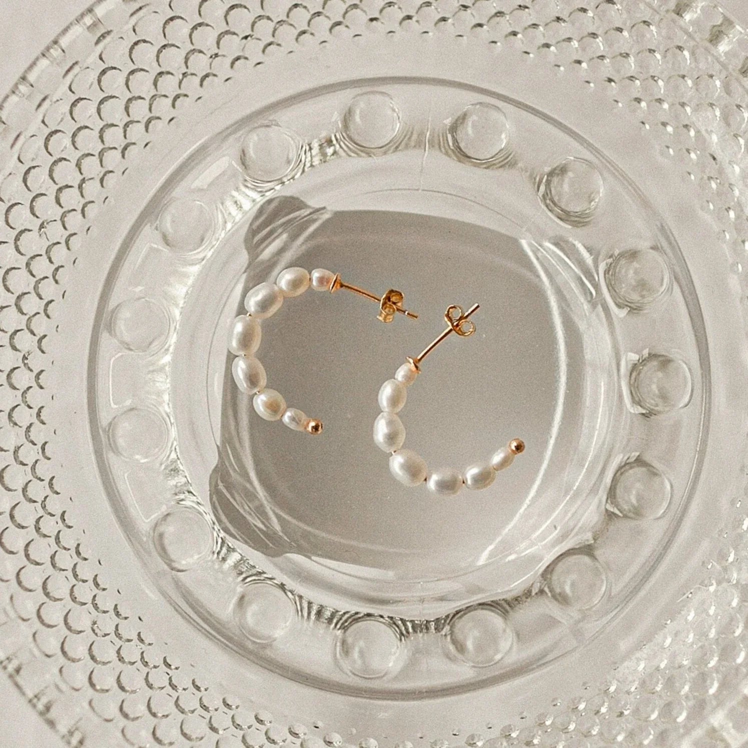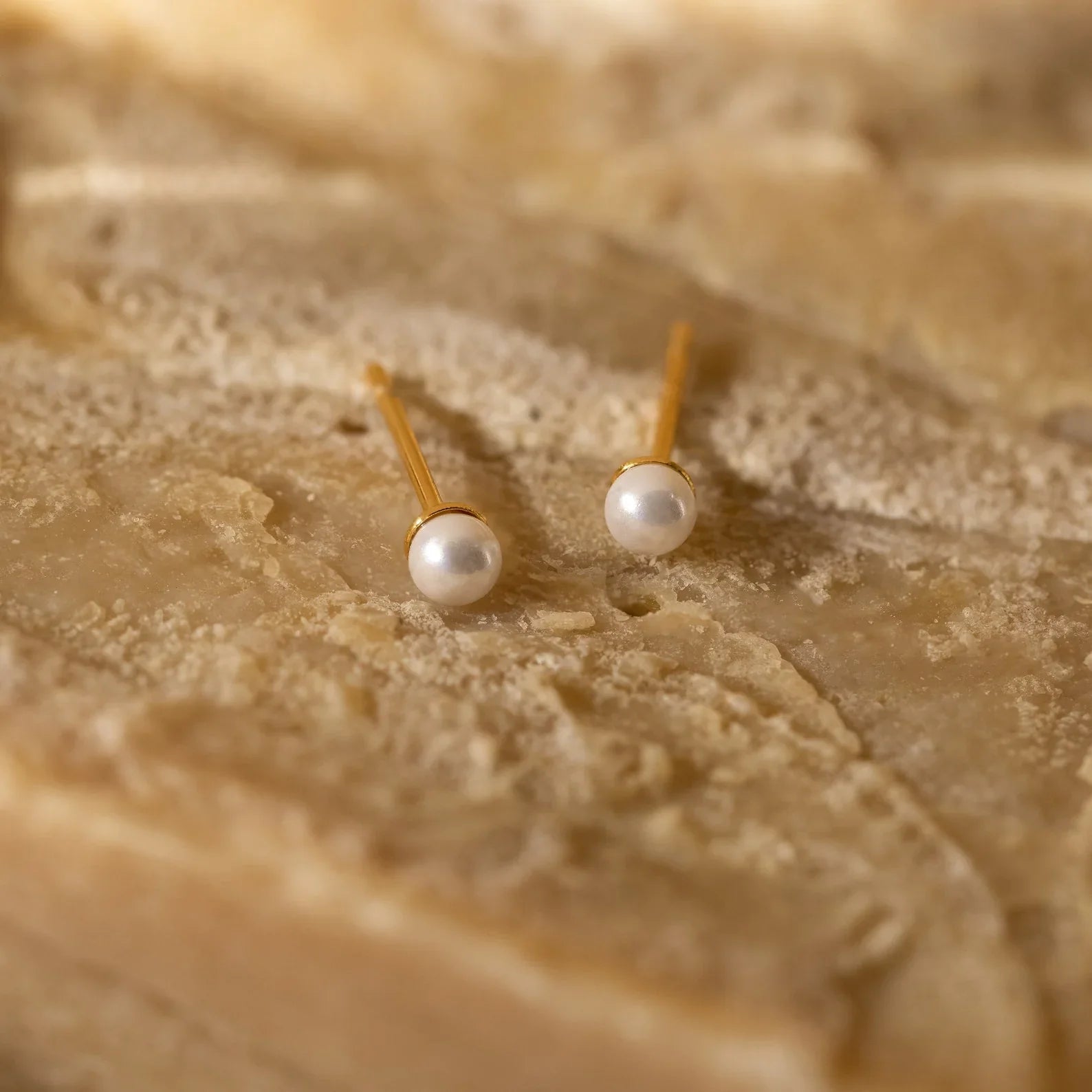 • Style E) Bundle Set of 4 (Save 10%): Includes Tiny Pearl Bar Studs, Dainty Pearl Studs, Molly Pearl Huggies, Pearl Hoops