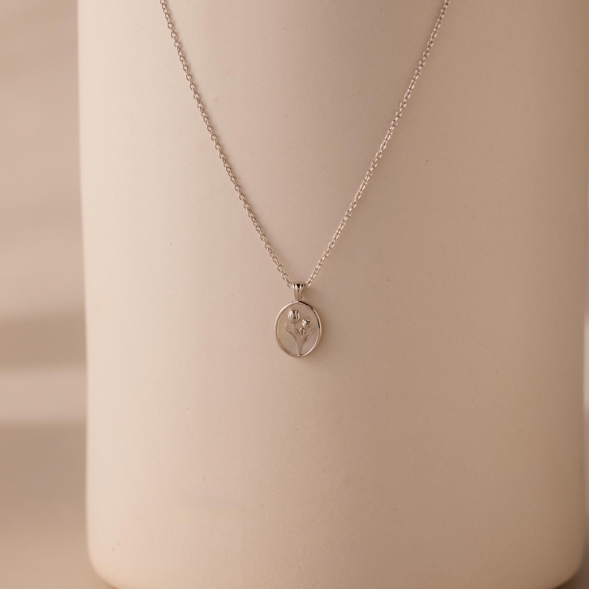 • Featuring a ~10x12mm Mother of Pearl Tulip Pendant on a dainty Cable Chain, adjustable from 16 to 18 inches