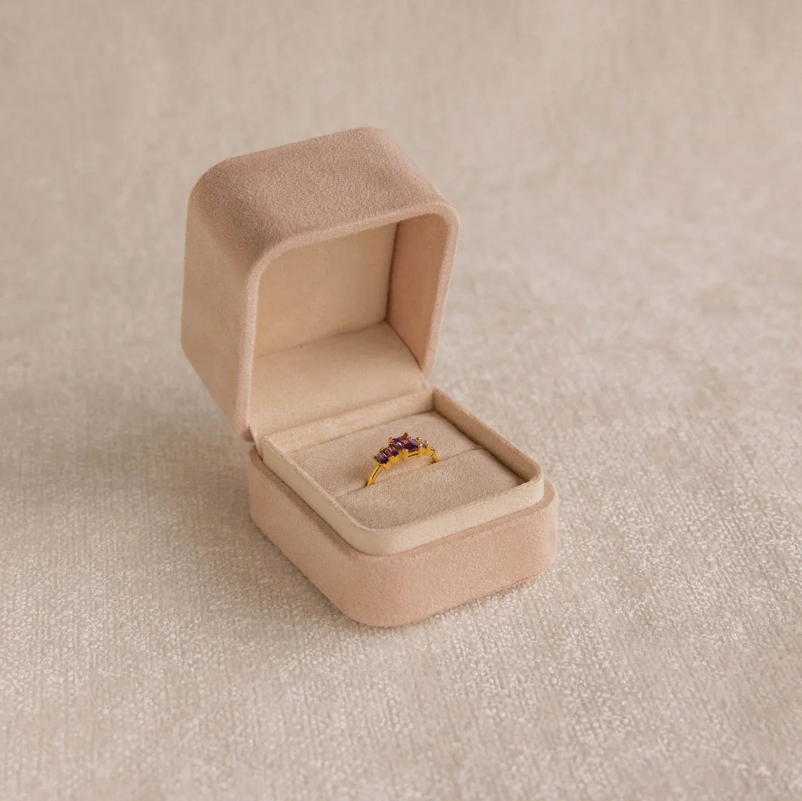 Delicate and soft to the touch, our Pink Suede Ring Box is perfect to hold your most treasured possessions. Let this jewelry box keep your meaningful pieces safe and sound while traveling or at home. The minimalist design is perfect to pair with any jewelry you keep inside.