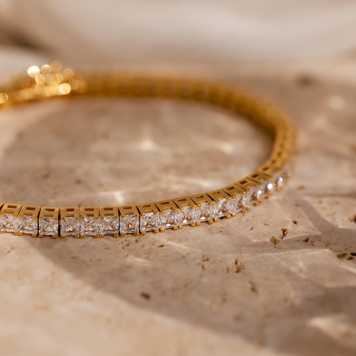 Shine bright with our Princess Diamond Tennis Bracelet, featuring a stunning row of princess-cut diamonds that sparkle with every move. Whether you're dressing up for a night out or simply want to feel like royalty, this dazzling piece is sure to make you the center of attention!
