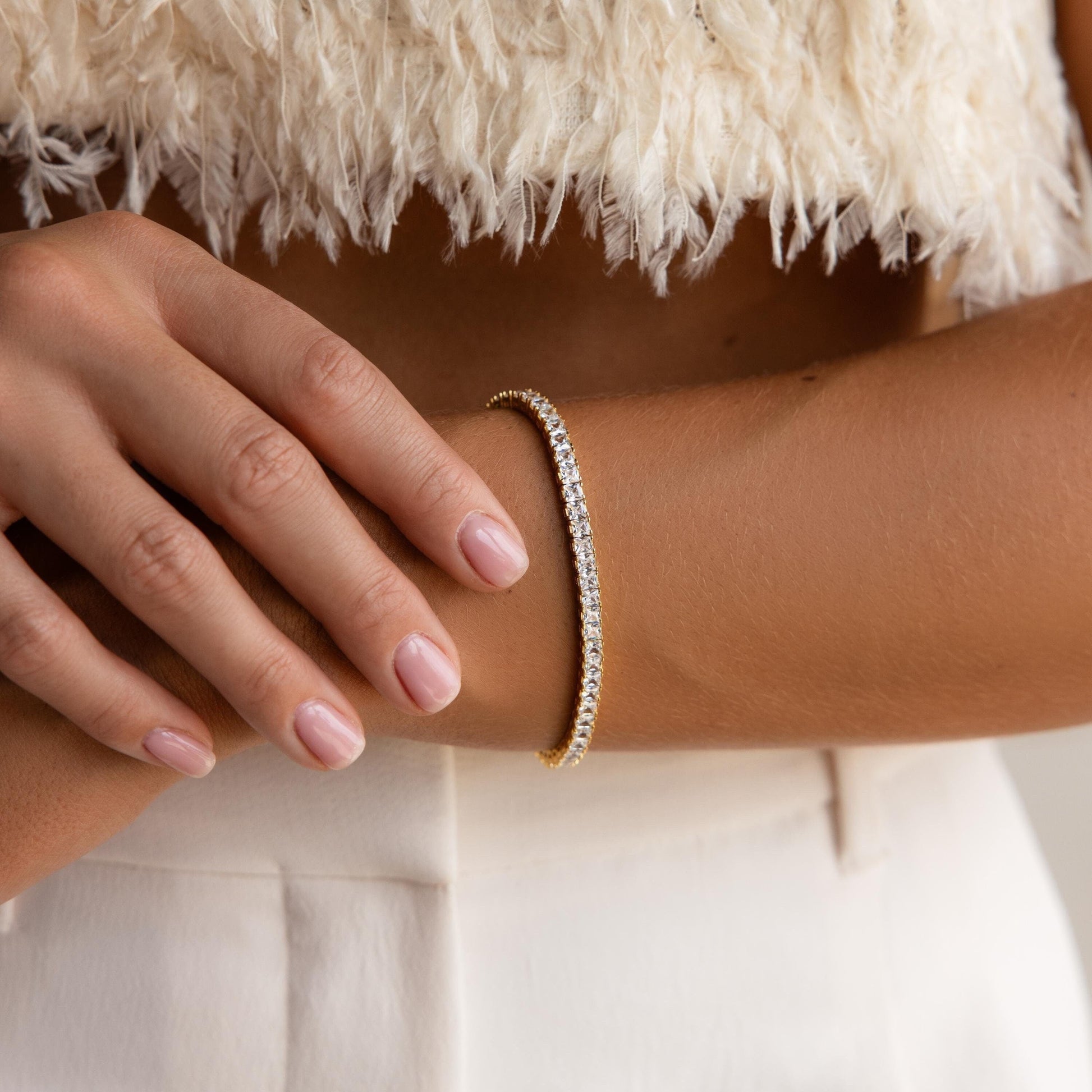 • Featuring a ~4mm Princess-Cut CZ Diamond Tennis Bracelet with a side prong closure