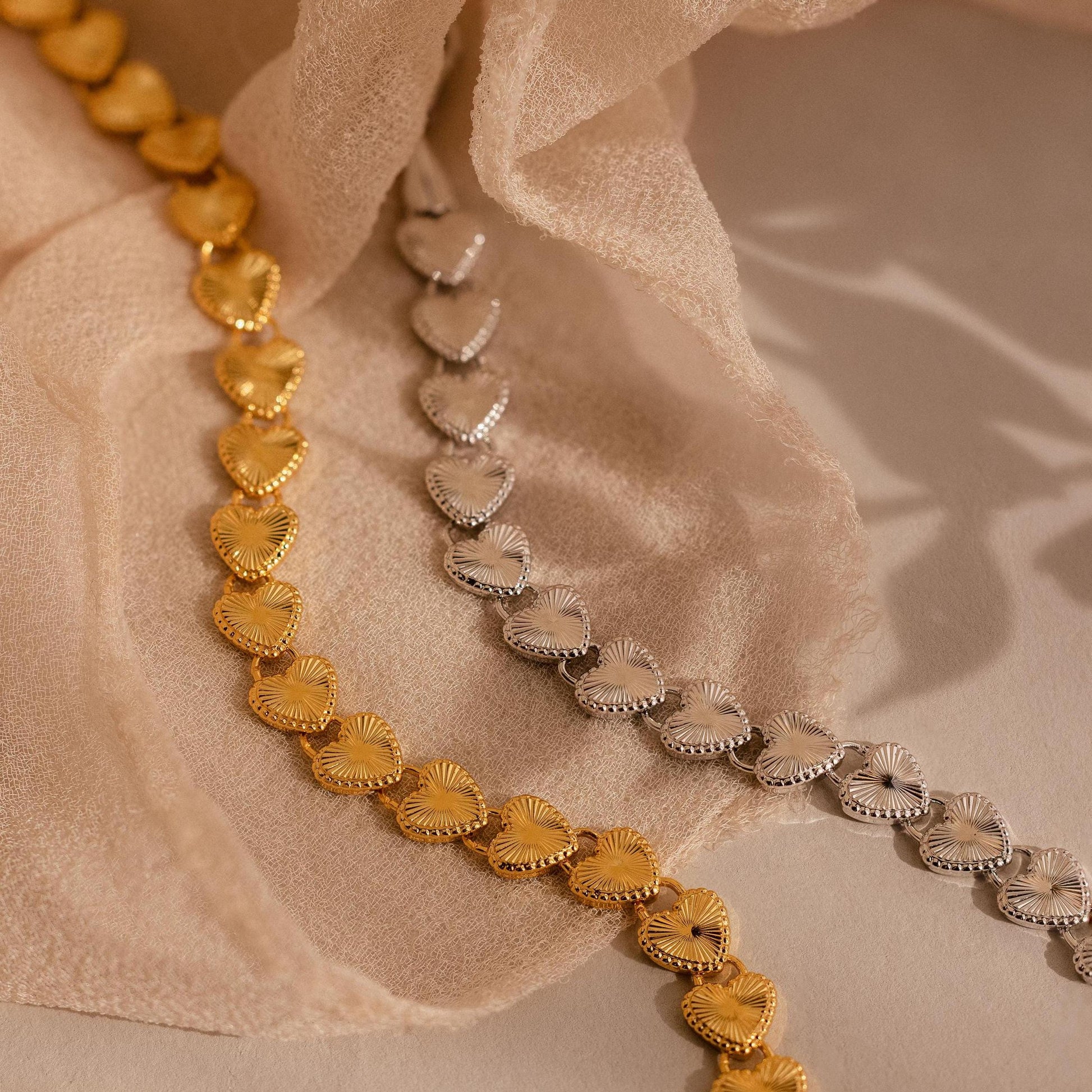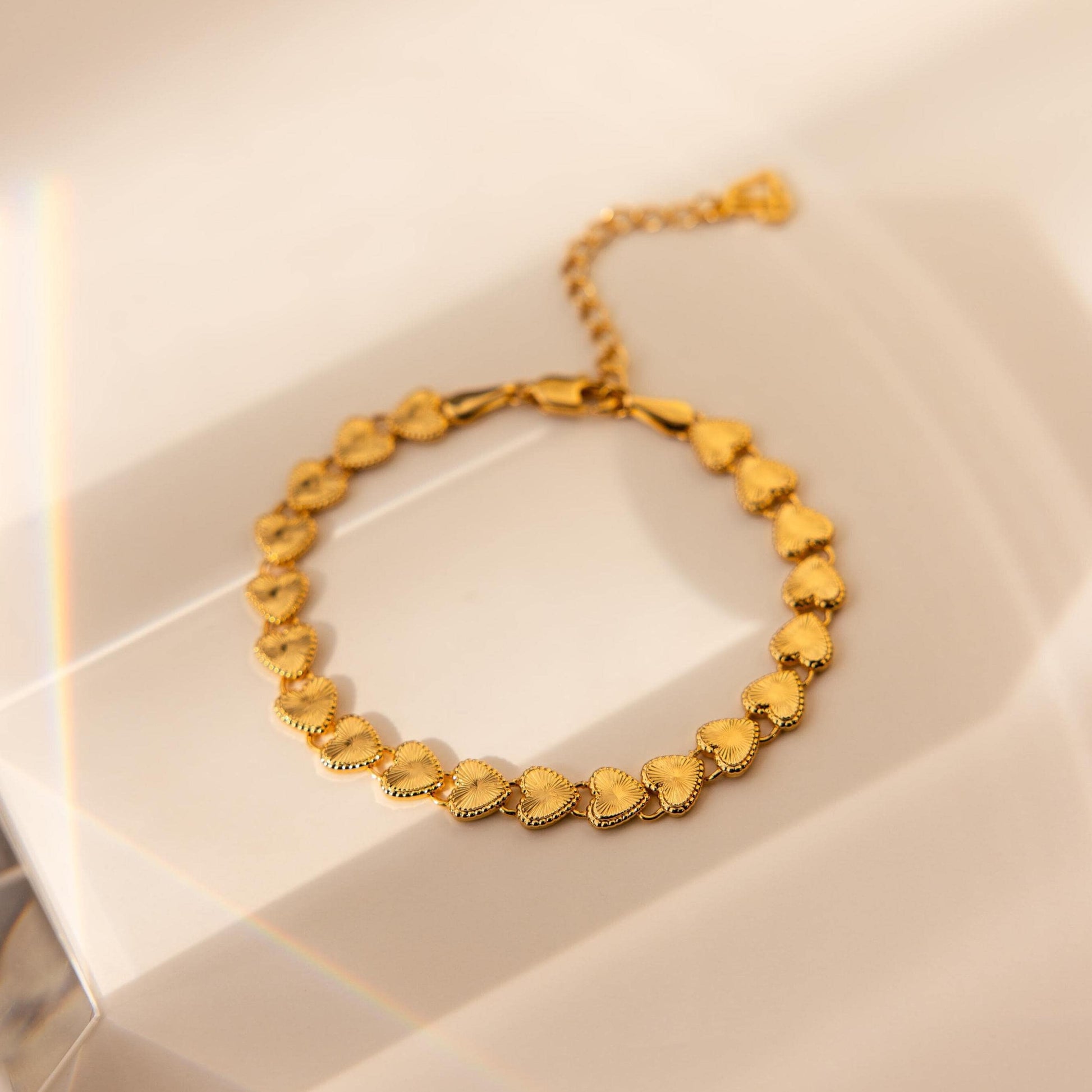 Sweet, stylish, and simply stunning — our Ribbed Heart Link Bracelet beautifully blends vintage elegance with a touch of romance! Perfect for a brunch with friends or a romantic evening out, this piece adds just the right amount of sweetness to any outfit ♡