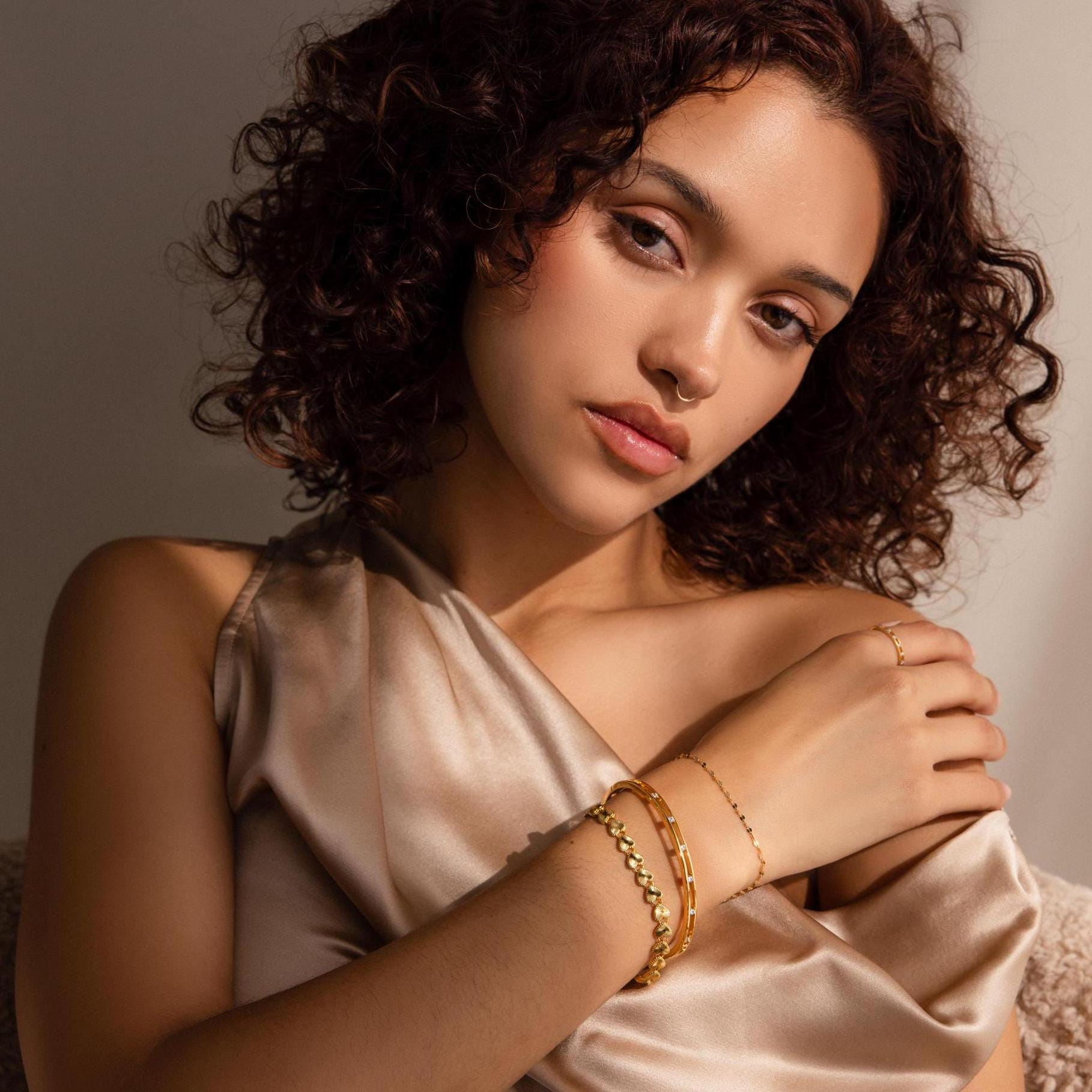 • Model showcases a charming, radiant stacking look featuring our , and .