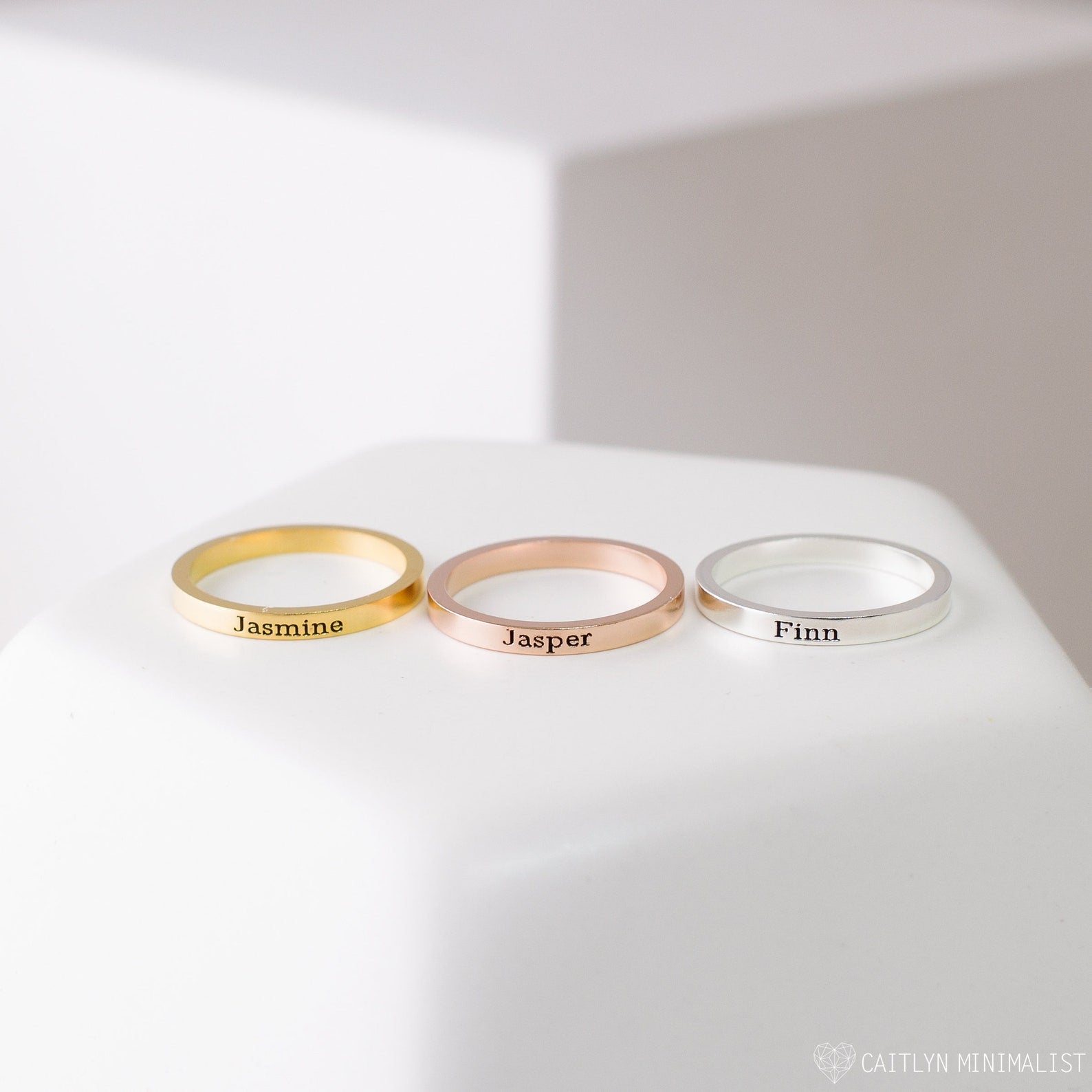 Customize your ring with a special name or short, meaningful quote, and stack them for a minimalist and modern look. Consider mixing metals for a somewhat unexpected, yet classic vibe.