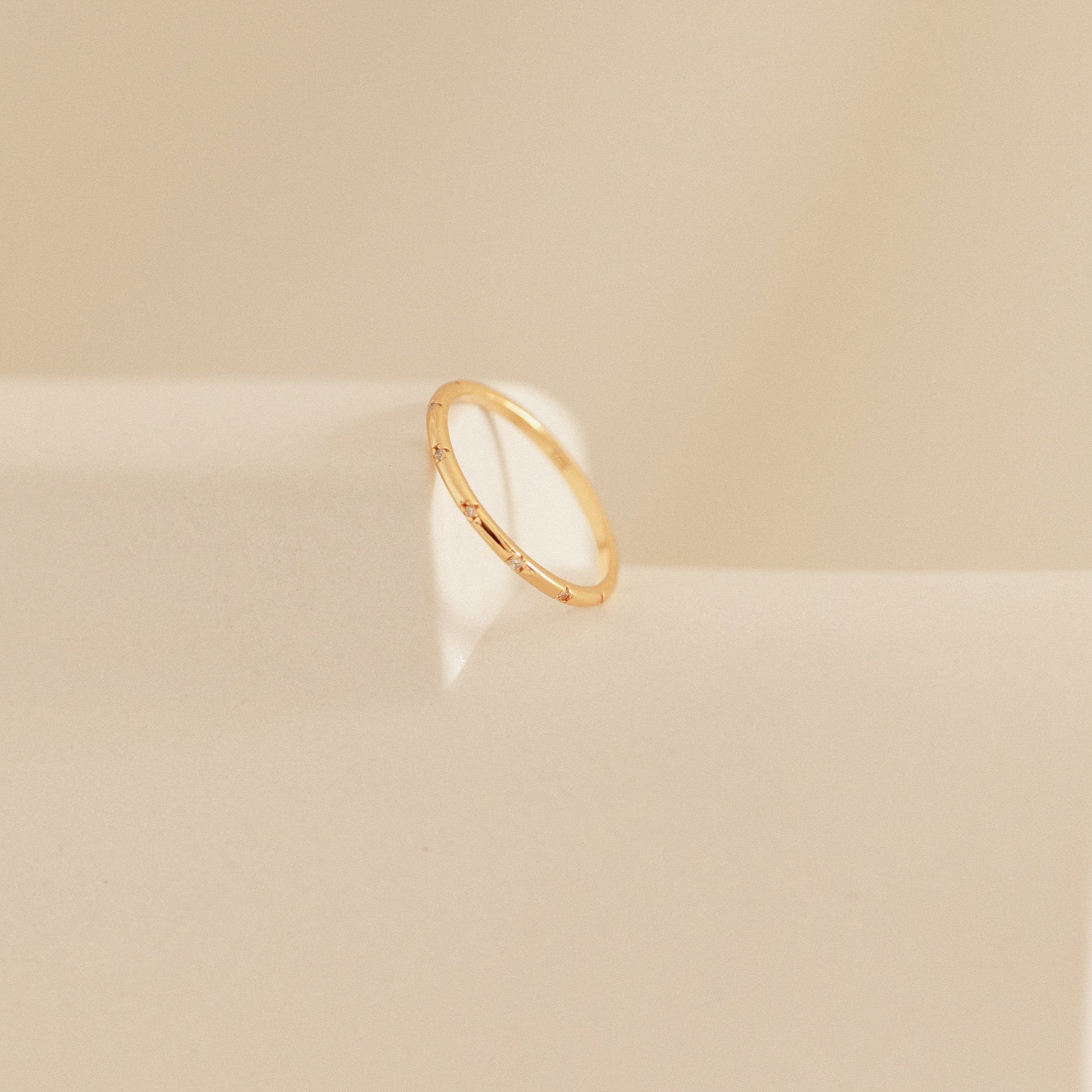 This dainty, feminine piece we call the Sprinkle Diamond Ring, resembles the twinkling constellation of a night sky. It is a special item you'll treasure, and the perfect, dainty size to be stacked with other rings - whether they're bold or minimalist.