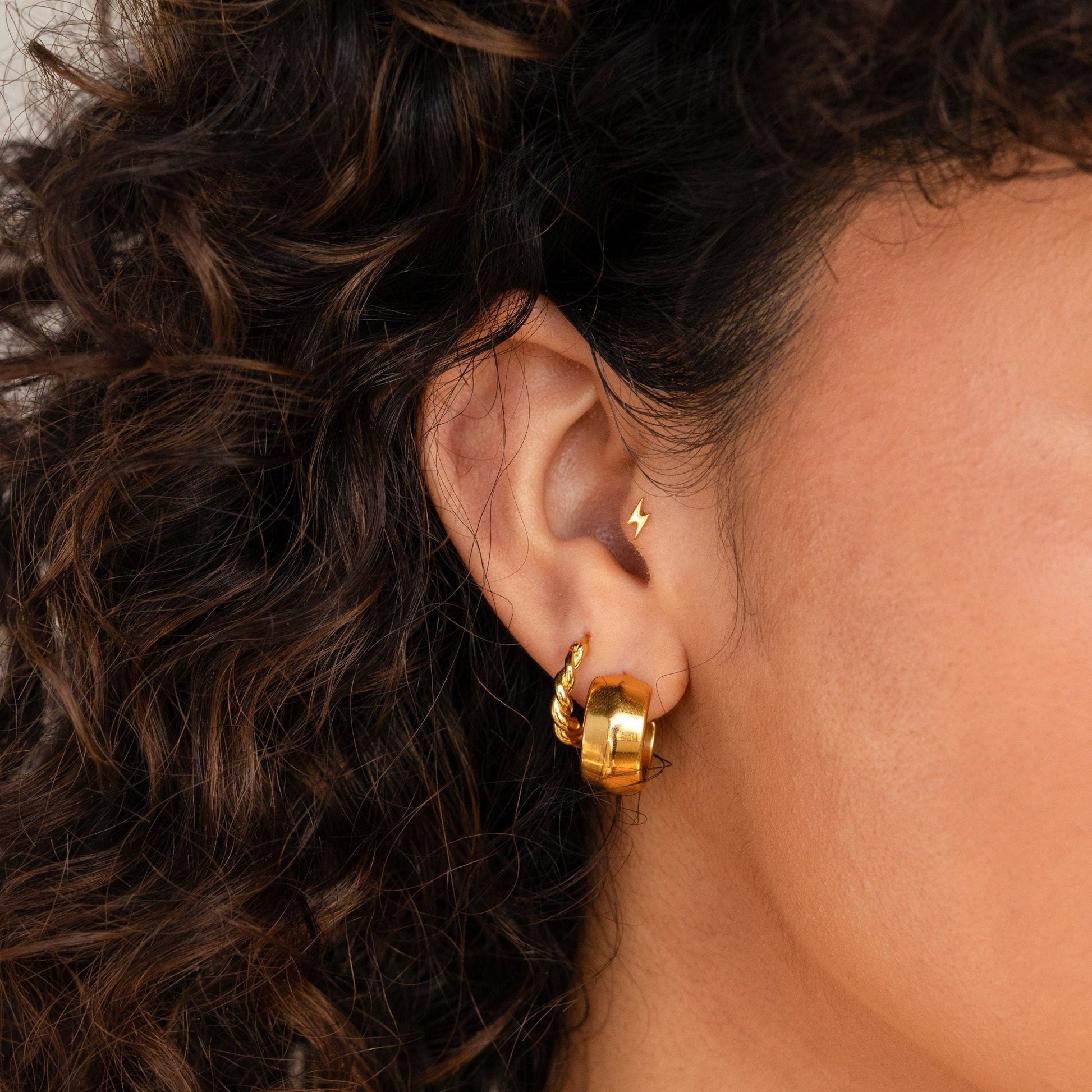 • Style D) Bundle Set of 3 (Save 10%): Includes Bolt Studs, Twisted Hoops, and Chunky Hoops