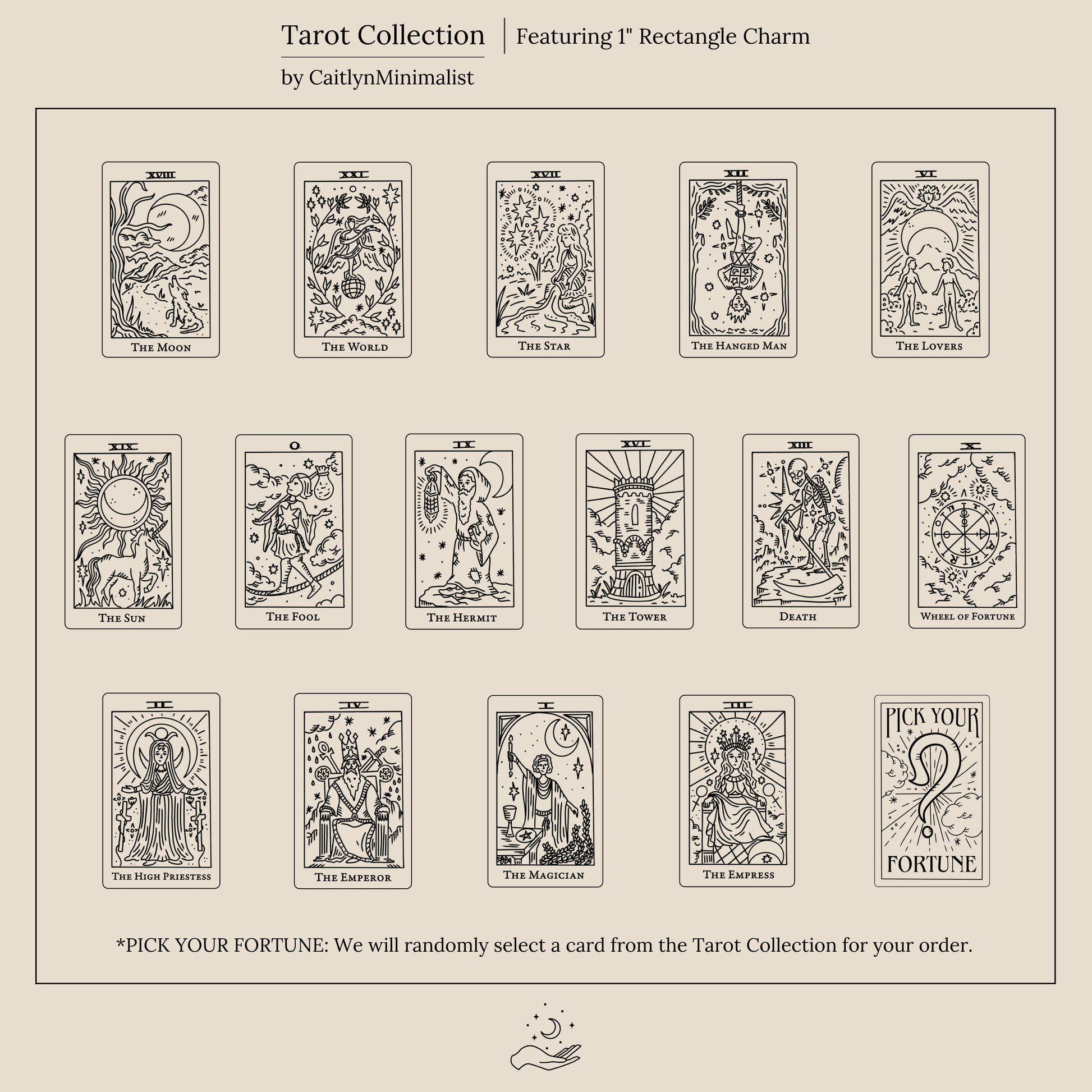 Our Tarot collection is all about bringing a powerful and ethereal meaning to your daily accessories. With divine guidance, connect with the universe and choose a card that leads you toward deeper intuitive messages. We have designed 15 of the Major Arcana to best fit your personal journey. Choose a specific card or leave it up to the universe and go with the ‘Pick Your Fortuneâ€?option to receive a mystery card selected just for you.