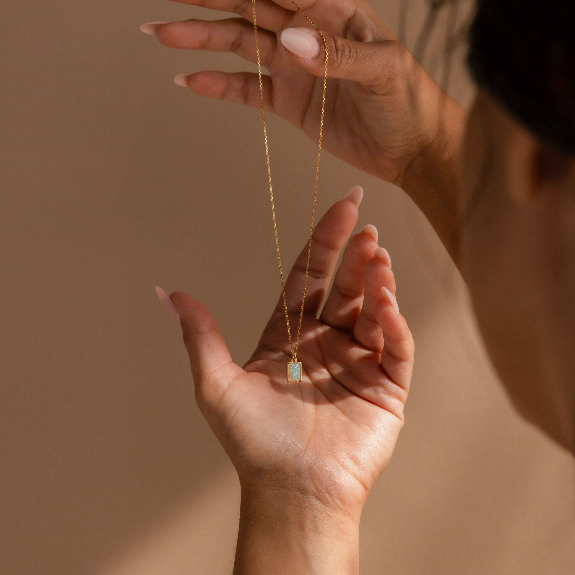 Enhance your style with our White Opal Charm Necklace, a versatile and minimalistic piece that beautifully showcases the unique properties of opal. Ideal for bridal jewelry and suitable for any occasion, this charming necklace adds a touch of elegance to your look.