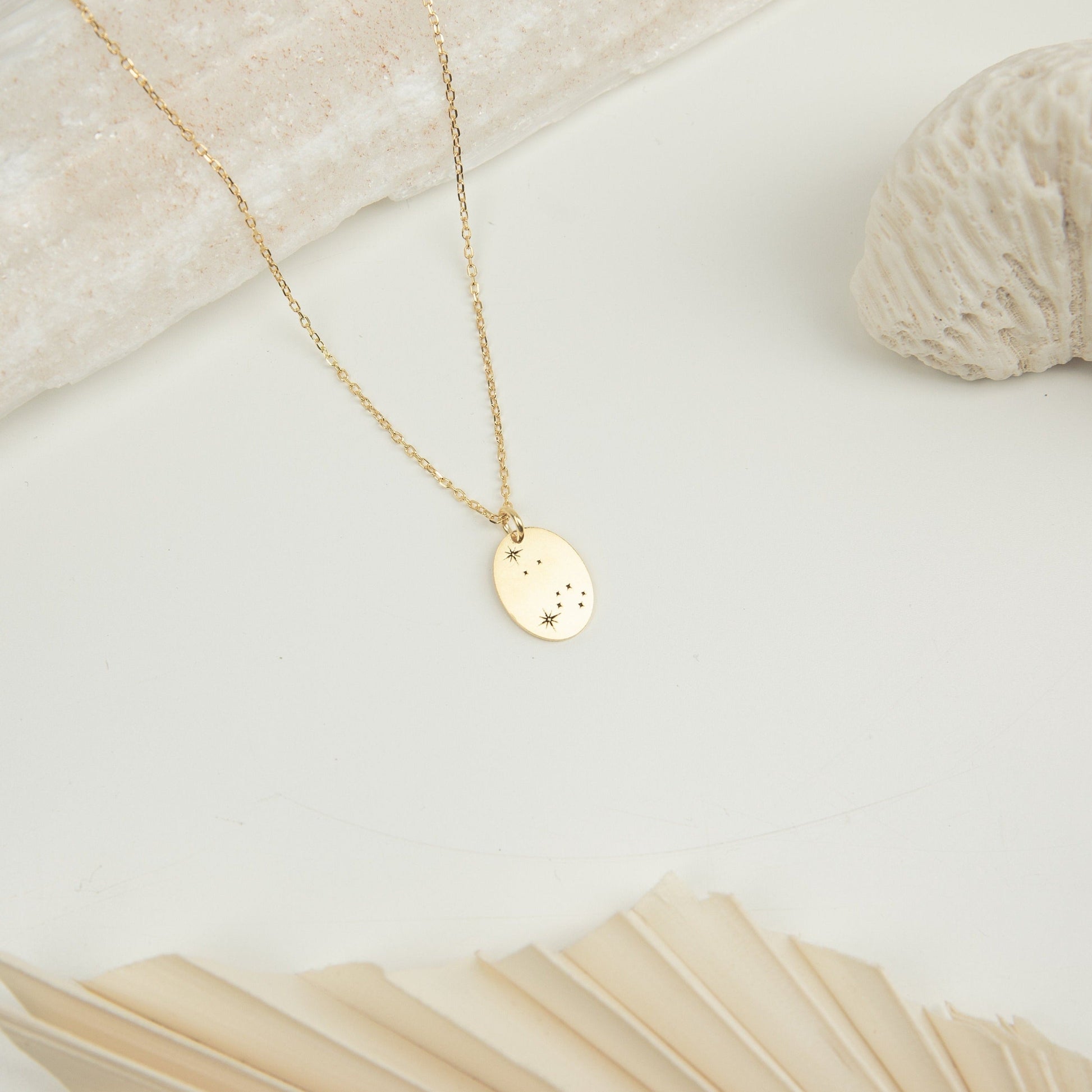 Channel your inner star power with our Zodiac Constellation Necklace, which features your star sign in this lovely constellation-themed amulet. Make it your signature piece, and carry a piece of the sky with you, always.